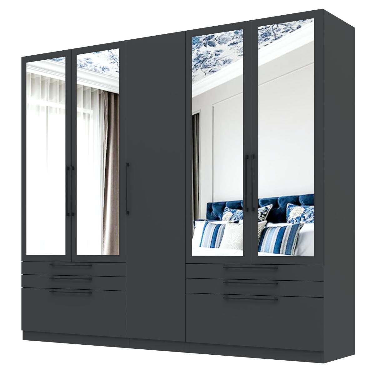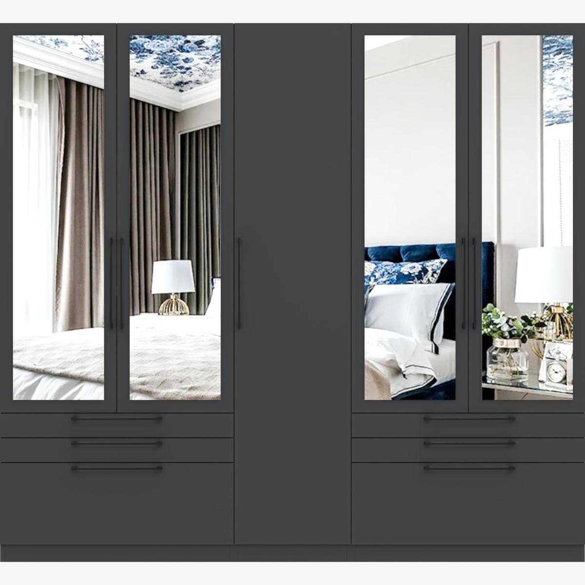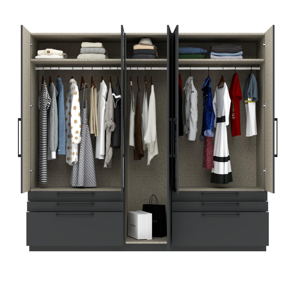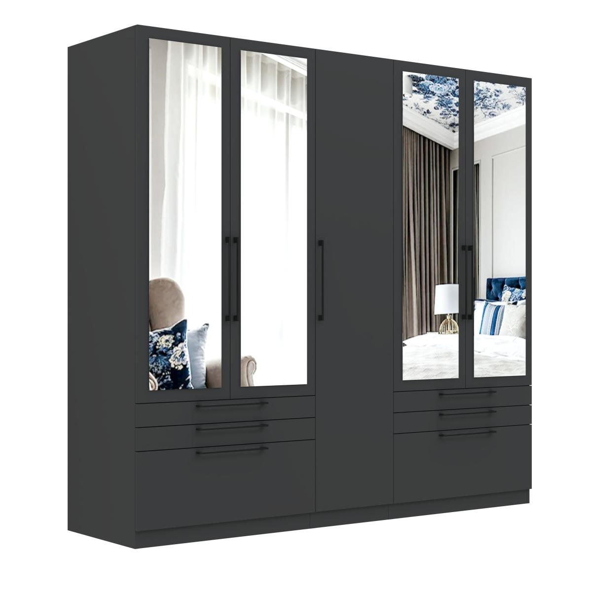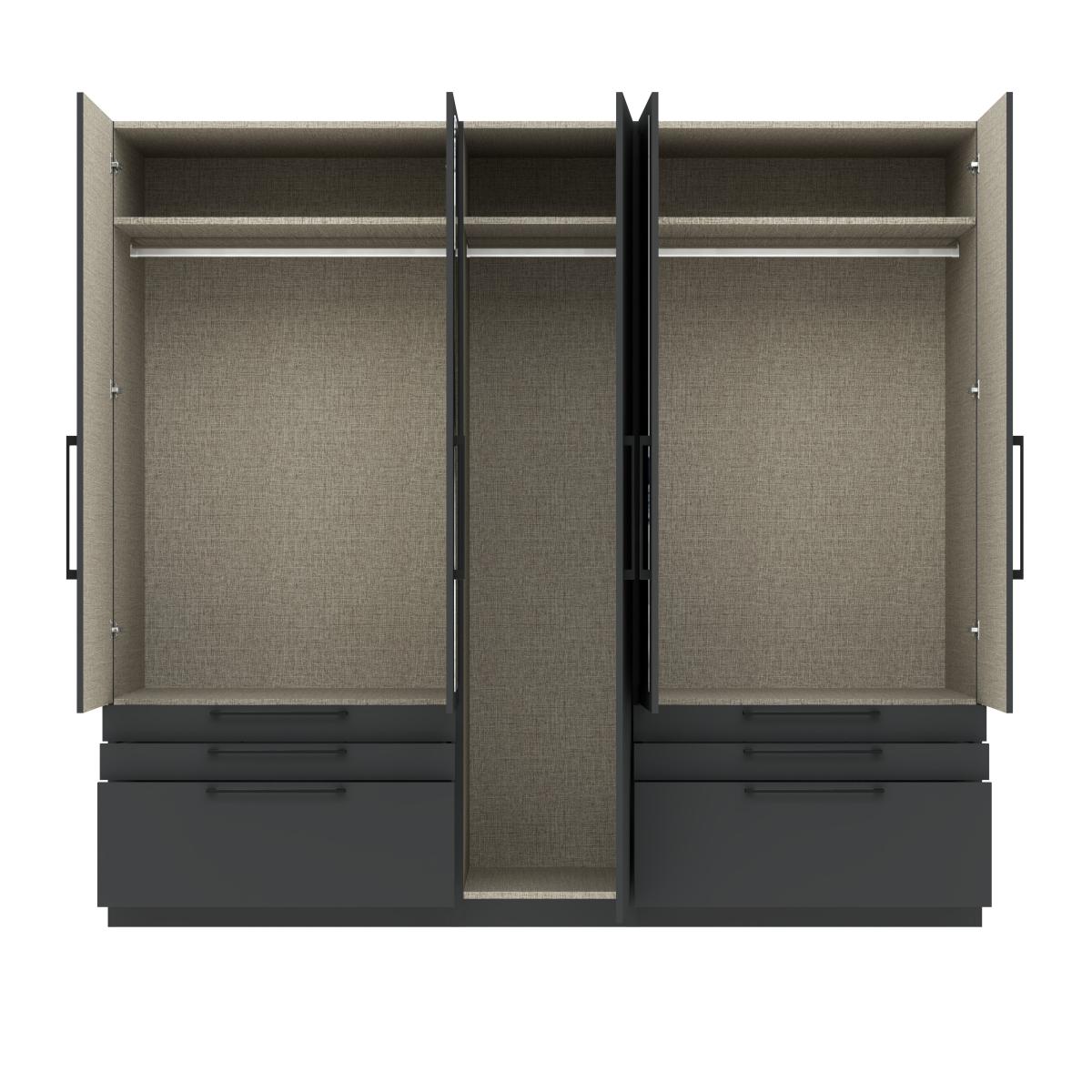 * Spacious, extra-large wardrobe * Adjustable shelves and hanging rails * 6 soft-close drawers * Options for no mirrors/mirrored doors * Choice of oak effect or dark grey anthracite colourways * Sleek, modern bar handles The ultimate storage solution for busy lives - the Foster 5 Door 6 Drawer Wardrobe provides ample, flexible storage, with adjustable shelves and hanging rails so that you can adapt the space to suit your needs. The 6 soft-close drawers have full extension runners for ease of access. The contemporary design features stylish oak effect or dark grey anthracite colourways and sleek metal bar handles, with options for no mirrors/mirrored doors. This wardrobe is the perfect choice for a blend of practical storage and a stylish finish.