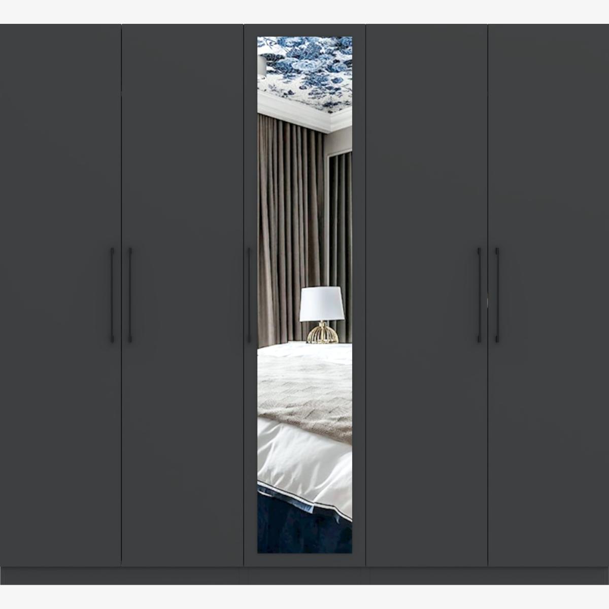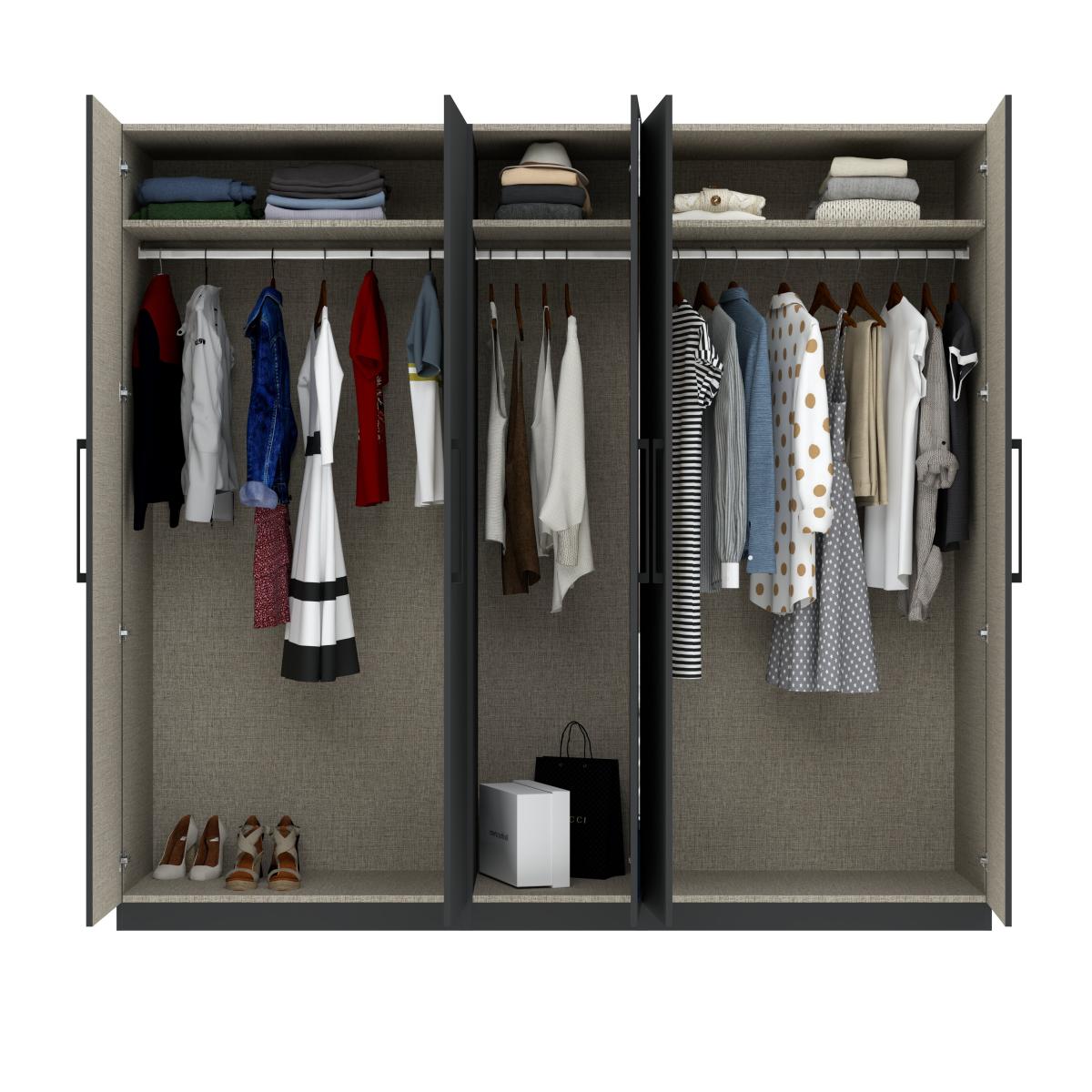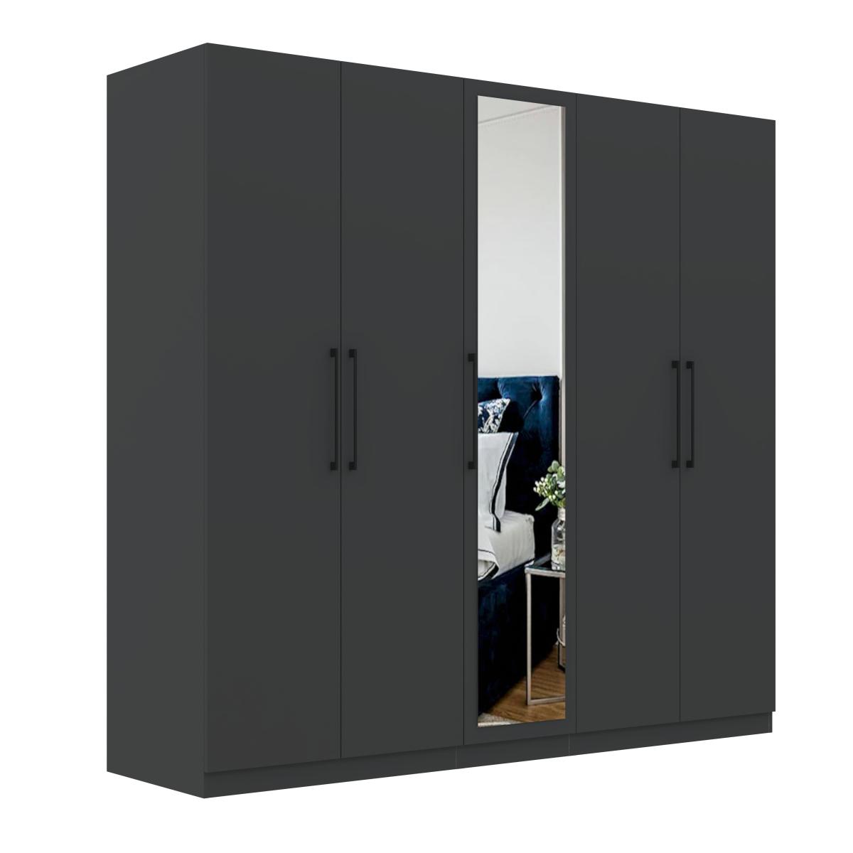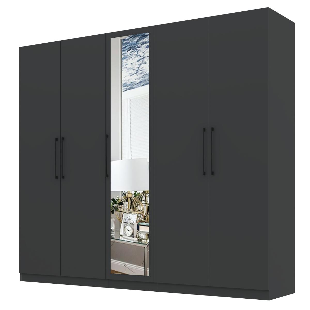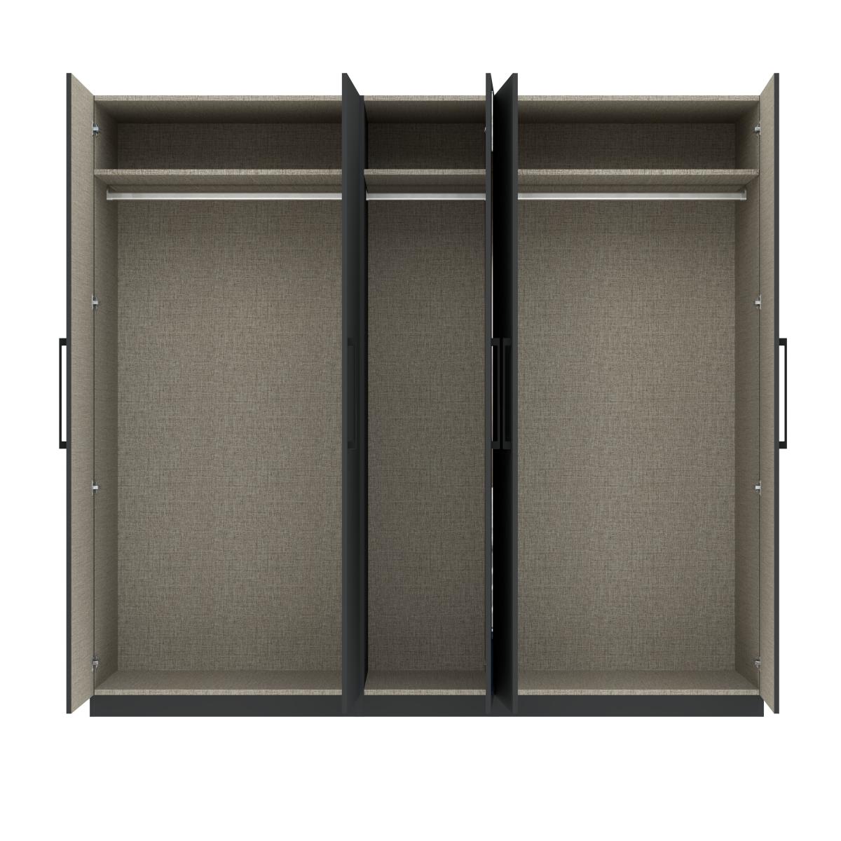 * Extra-large, spacious wardrobe * Options for no mirror/mirrored * Available in oak effect or dark grey anthracite * Sleek metal bar handles * Adjustable shelves and hanging rails Spacious storage and contemporary style - the Foster 5 door wardrobe is an extra-large storage solution that doesn't compromise on looks. With adjustable shelves and hanging rails, the space can be adapted to suit your needs. Modern, effortless style is achieved with sleek metal bar handles and a choice of oak effect or dark grey anthracite finishes and options for no mirrors/mirrored doors. The ideal storage companion for modern life.