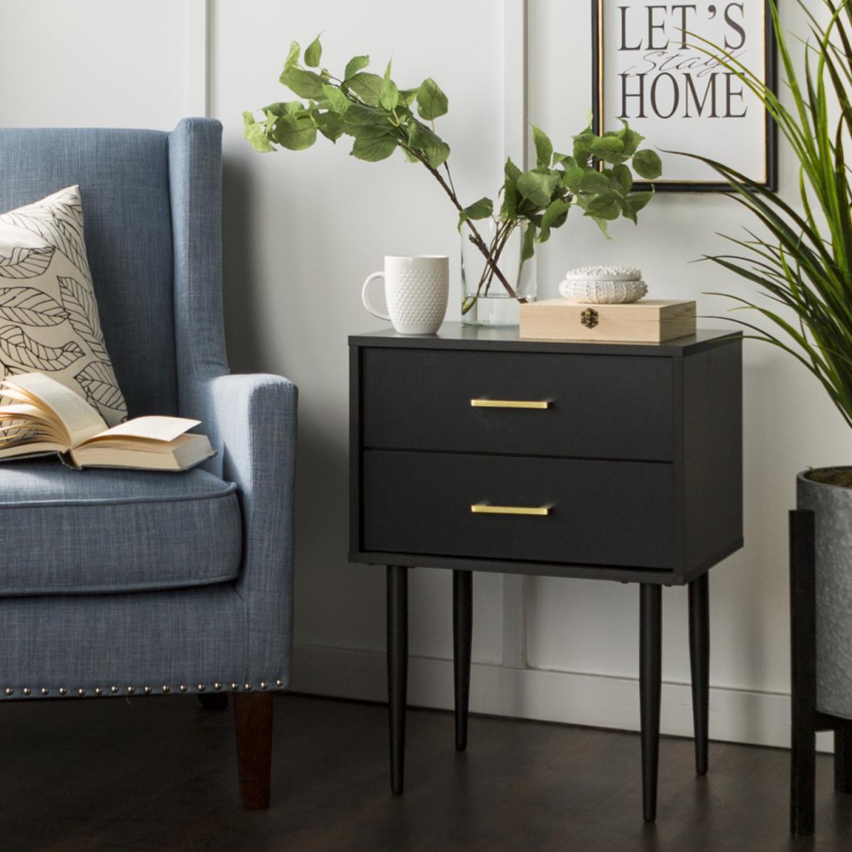 Foster Black Wooden Side Table with 2 Drawers