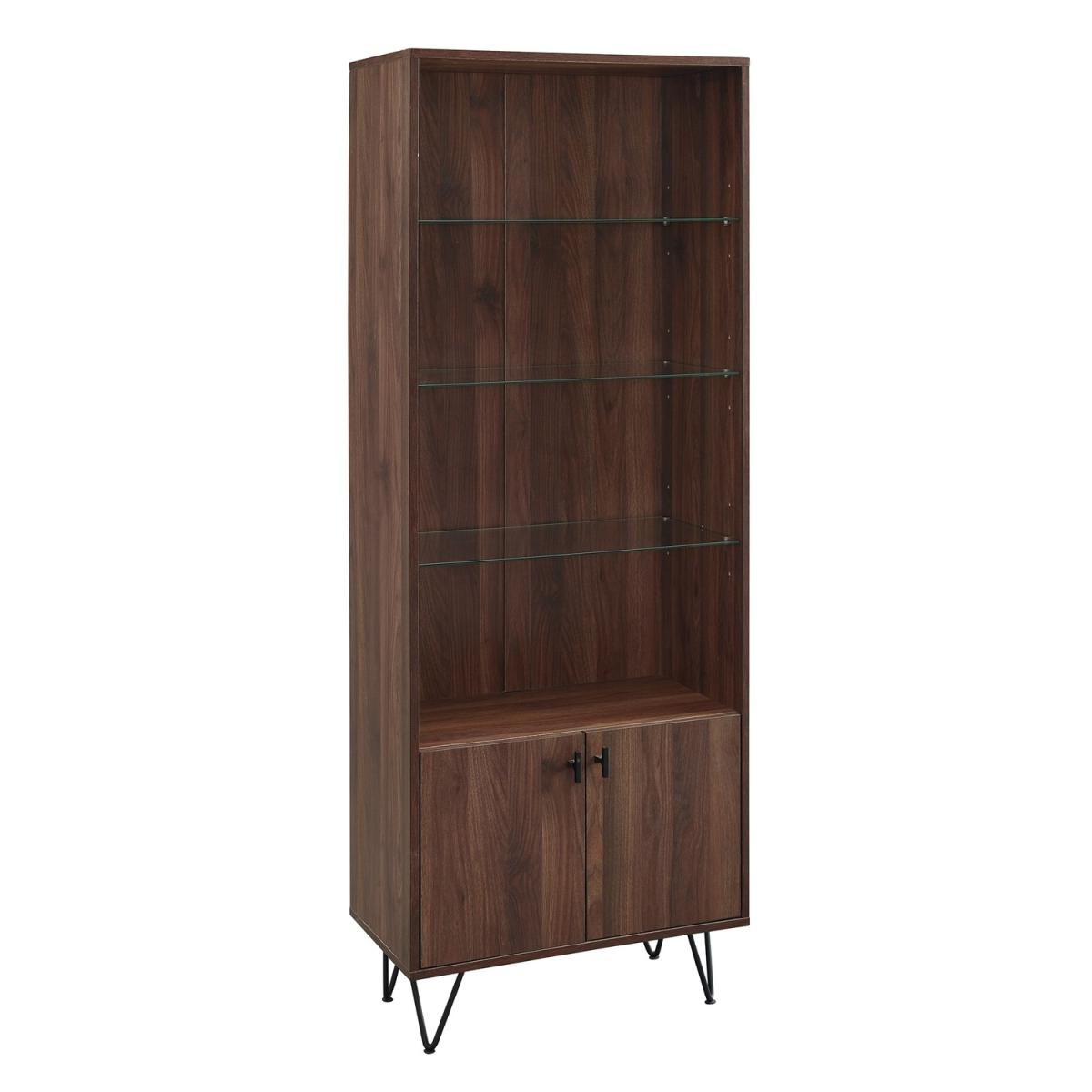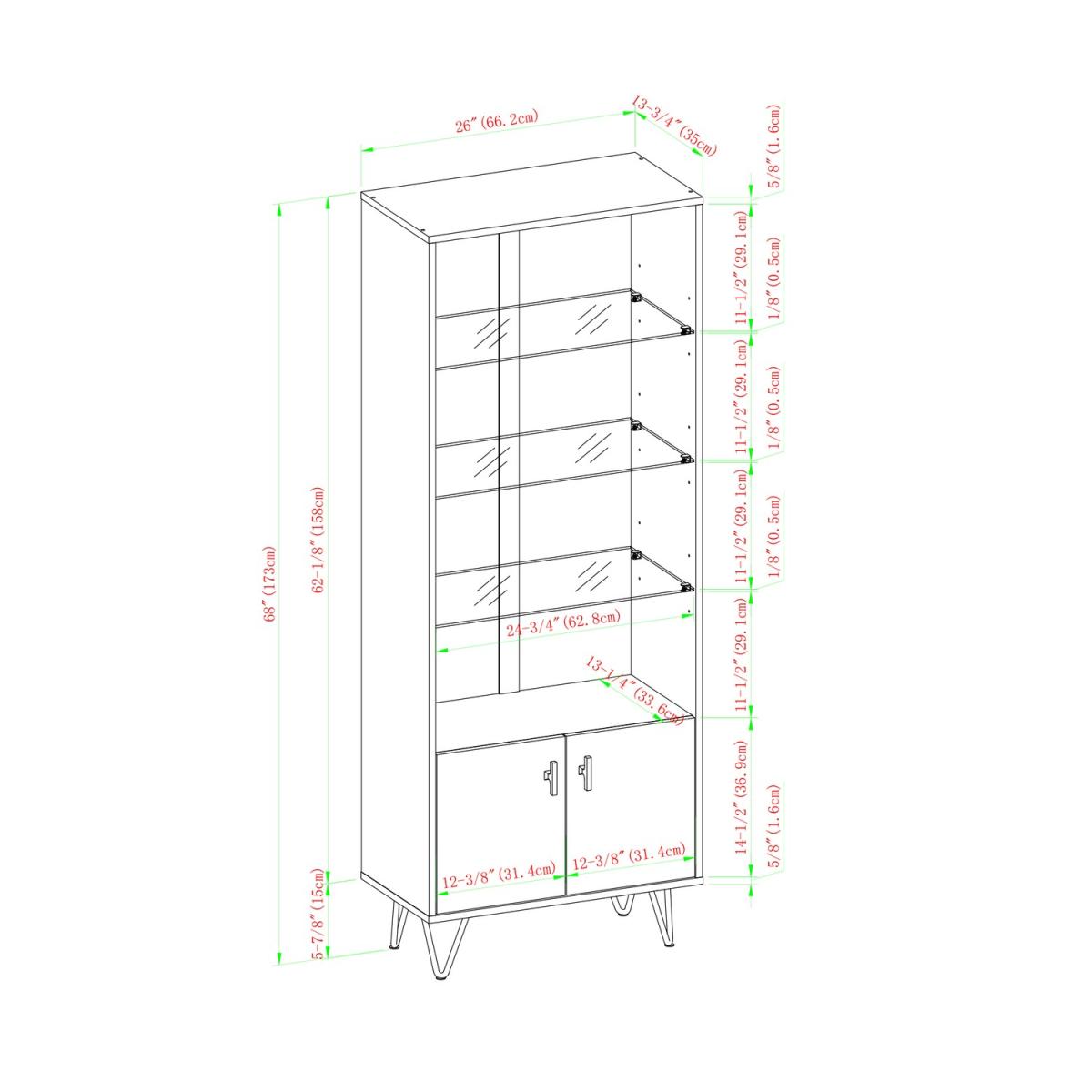 Dimensions W67x H173x D36 cm. This storage cabinet is perfect for your home. The open and closed storage allows you to stylishly display your favourite things and accessibly keep your essentials. This modern mixed material storage cabinet will bring a smart edge to your home. Features. Open and closed storage. Adjustable tempered glass shelves. Mixed material bookshelf Hairpin metal legs. Mid-century modern style Assembly Required..