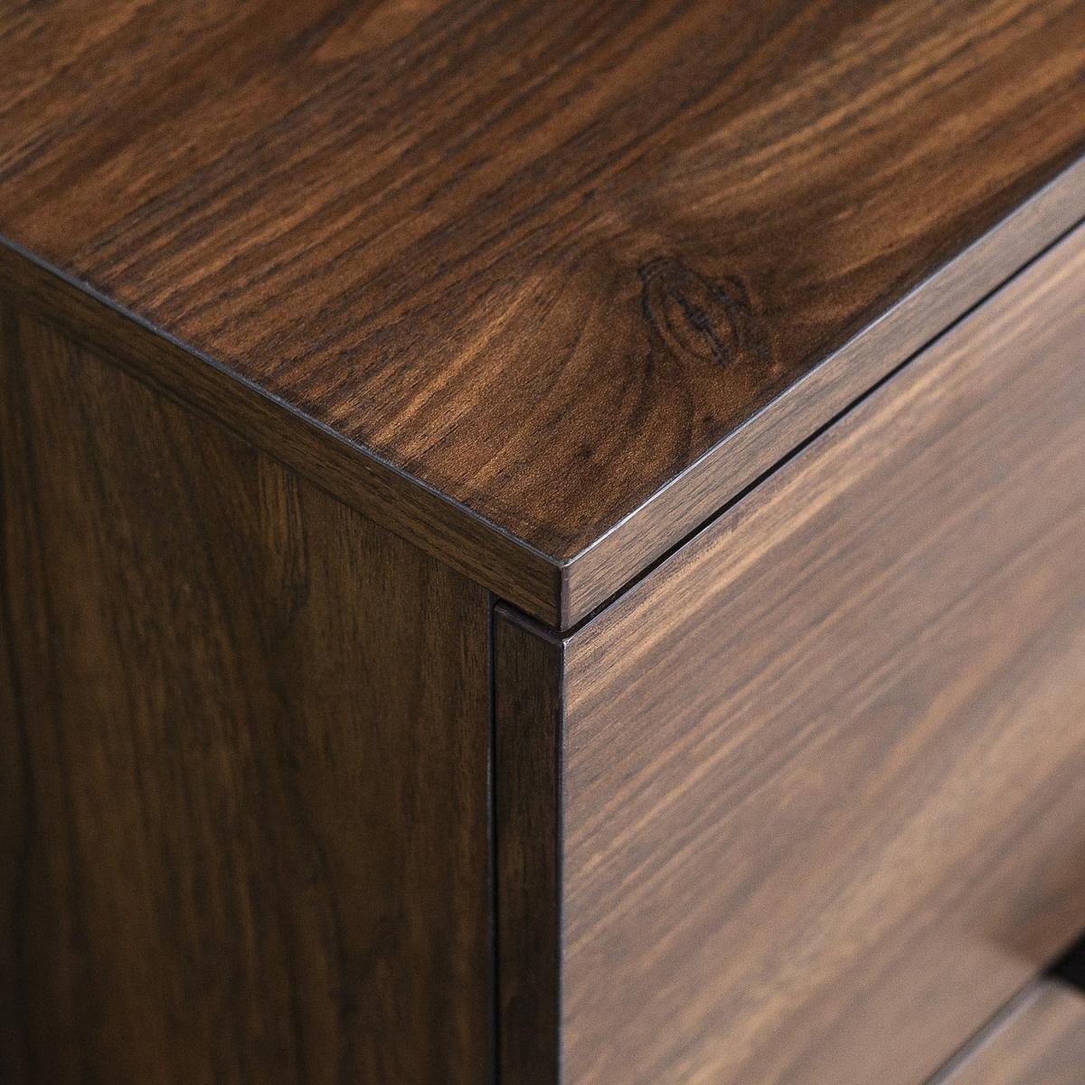 I love this media unit for its sleek, modern look and rich dark walnut finish, which adds warmth and sophistication to any living space. It works particularly well in contemporary or Scandinavian-inspired interiors, where clean lines and functional design are key. Practical styling tips include pairing it with minimalist accessories like muted vases or books to keep the look uncluttered, or adding textured textiles and greenery nearby to create a balanced, inviting atmosphere. Its ample storage also makes it perfect for keeping media essentials neatly tucked away, maintaining a tidy, stylish setting.
