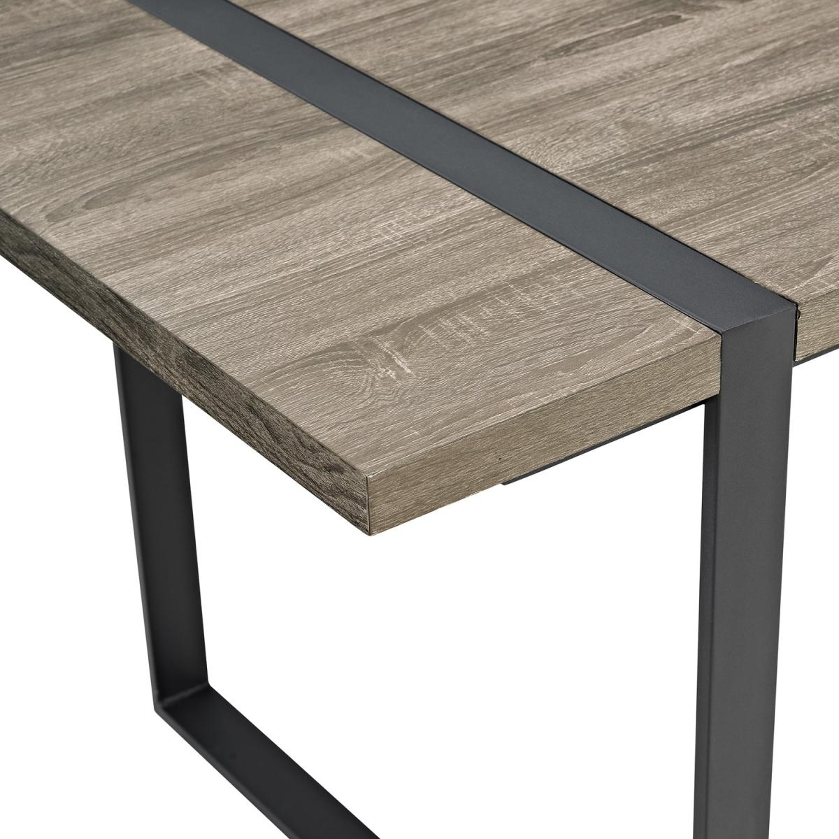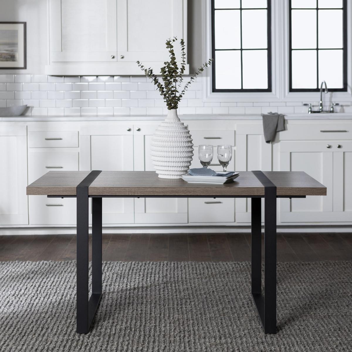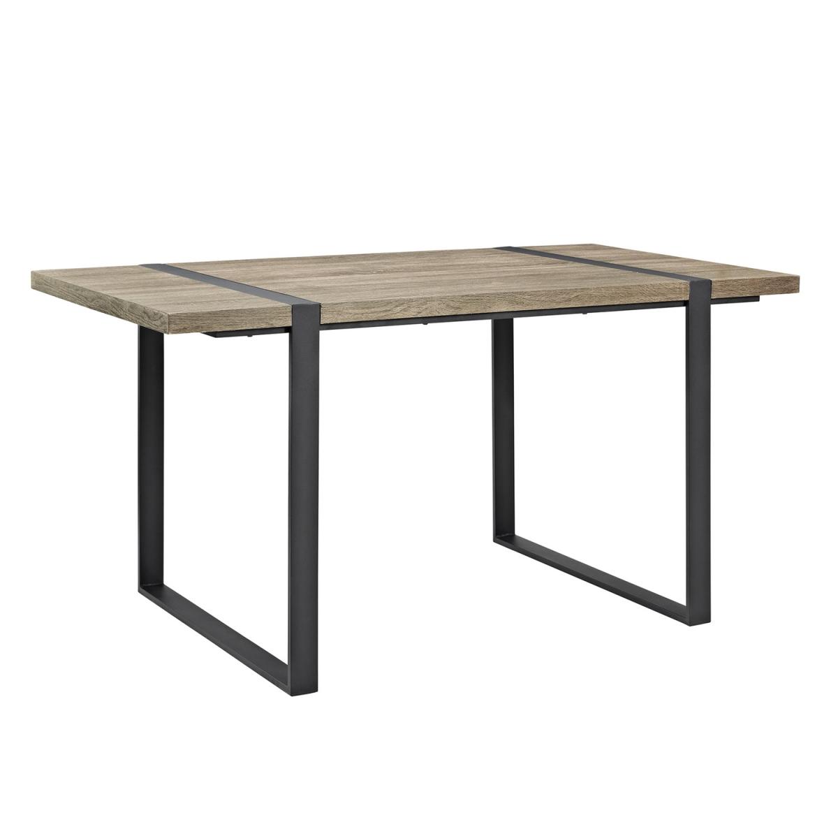 Dimensions H76 x W152 x D81 cm. The unique blend of metal and wood in this dining table not only makes it durable and practical but also a stylish addition to your kitchen or dining room. Reliably constructed from high-grade MDF and powder coated metal. The urban industrial inspired design and beautiful finish make this dining table versatile enough to fit any interior and unique enough to make a contemporary statement in your home. Features. Made in an urban industrial style Blend of materials looks stylish in your home Perfect for your kitchen or dining room paired with chairs. With powder-coated metal legs that wrap around the table. A high-grade MDF table top is durable for everyday use. Assmbley required..