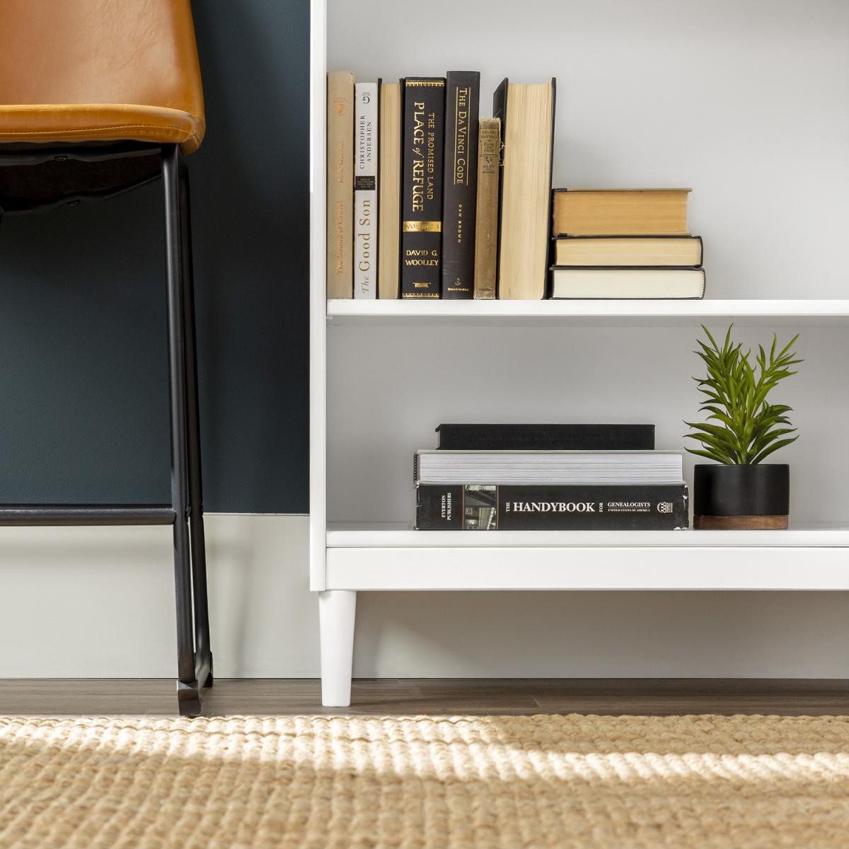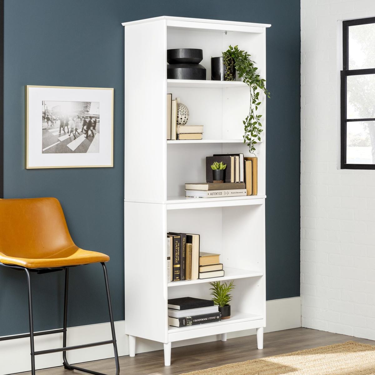 Dimensions H178 x W39 x D74 cm Features. Mid-century modern bookshelf with durable solid pine wood build. Five open storage compartments for plenty of display space. One sturdy fixed shelf and three adjustable shelves for customizable organization Assembly required..
