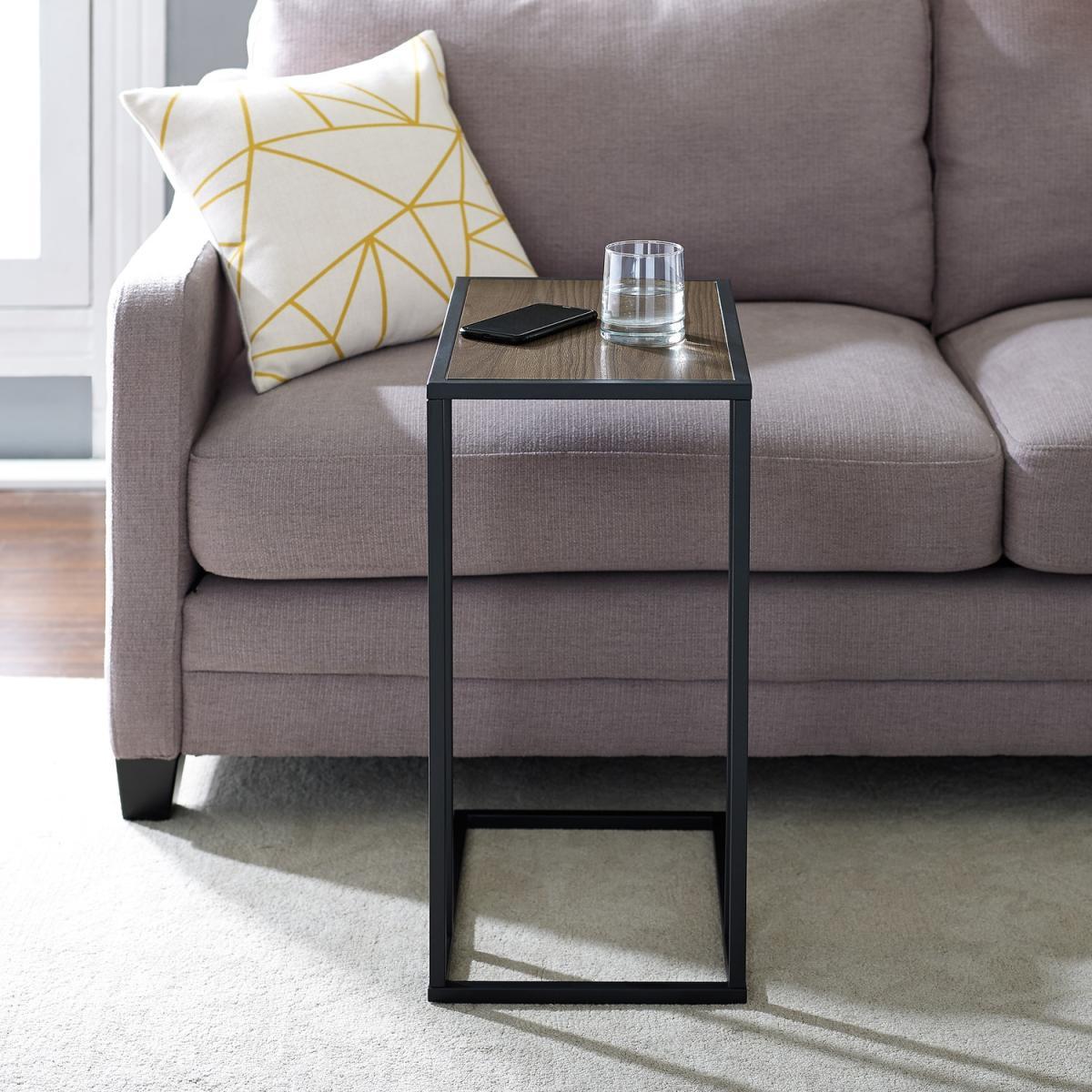 Dimensions H61 x W30 x D48 cm. On-trend and practical this side table will give your home an update in style. With a seamless blend of urban industrial modern contemporary and transitional style you can see how this side table will work with just about any room's current aesthetic. Crafted with a durable laminate top surface and asymmetrical metal frame with a square base giving it a gorgeous luxe factor that will look good in whichever room you choose to showcase it in. Features. Crafted of metal and durable laminate. With a versatile style to be used as a side table TV tray or nightstand Featuring an urban industrial transitional and modern design for a contemporary style. Use in your living room or bedroom. With an asymmetrical design for a stylish addition to your home Assembly required..