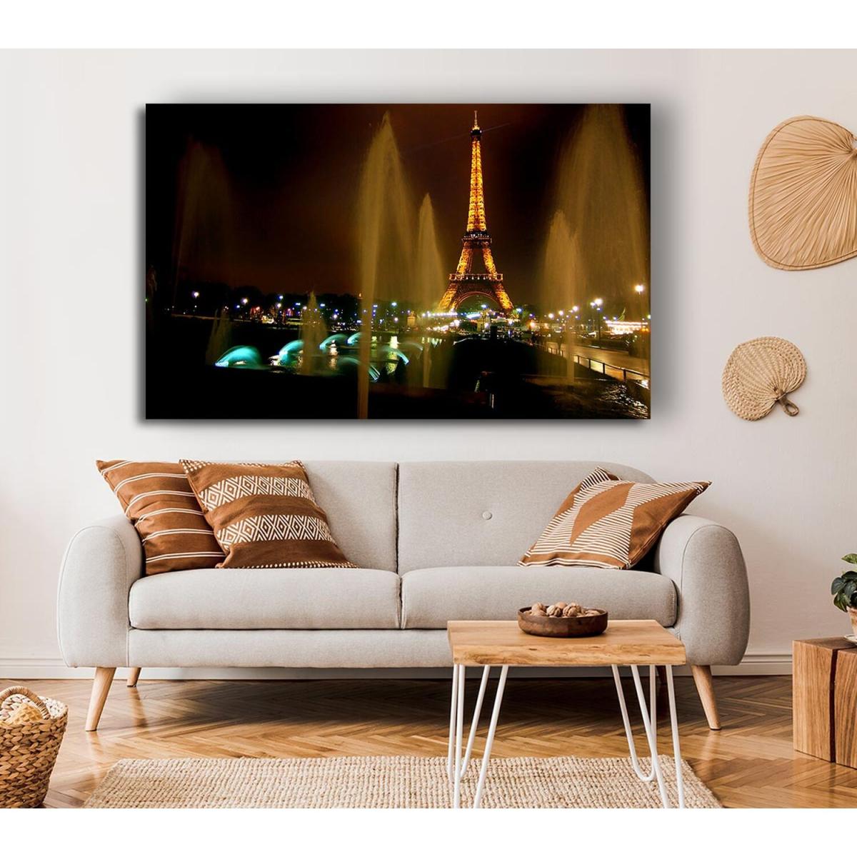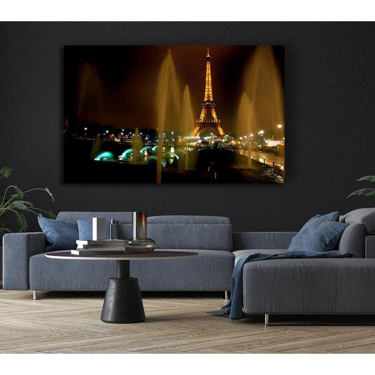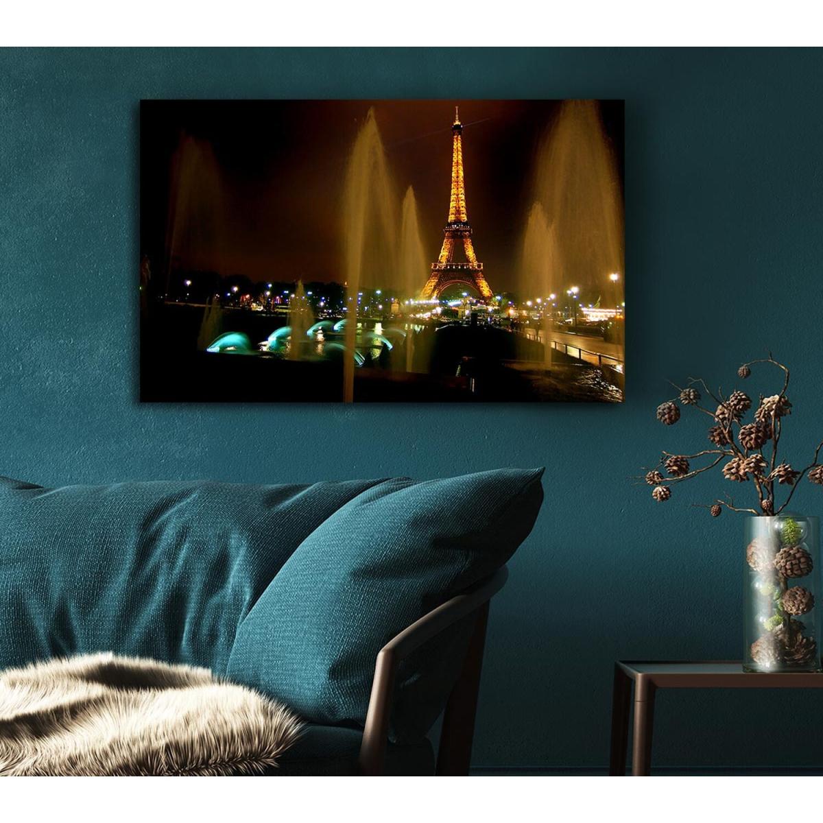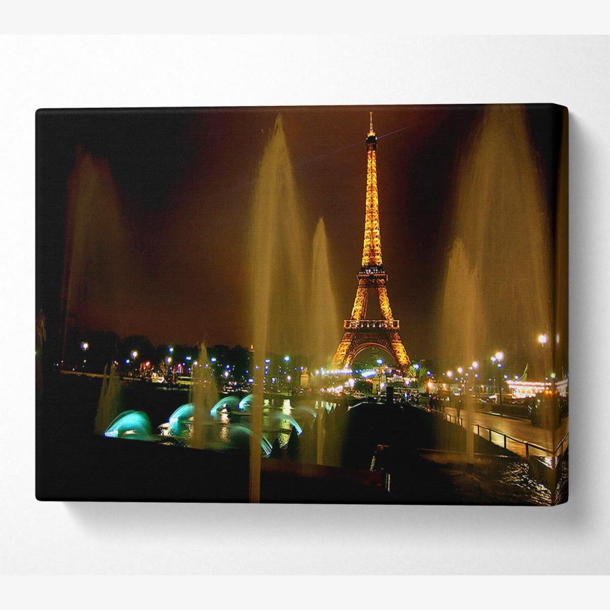 Fountains And Eiffel Tower Canvas Print Wall Art - Yellow / 35.56cm