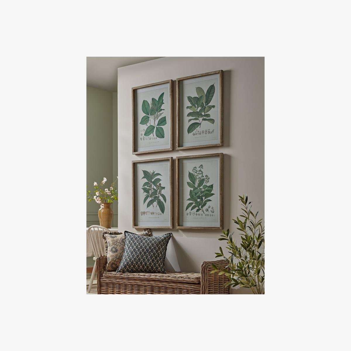 I love this set of four botanical prints because they bring a touch of nature indoors with a fresh, modern feel. They work particularly well in living rooms and bedrooms with neutral or earthy colour palettes, adding visual interest without overwhelming the space. To style them effectively, try hanging them in a grid formation above a sofa or sideboard for a clean, structured look. For added impact, consider pairing them with textured ceramics or leafy houseplants to create a cohesive natural theme. These prints are versatile enough to suit contemporary, Scandi, or even boho interiors, making them a great staple for refreshes or new schemes.