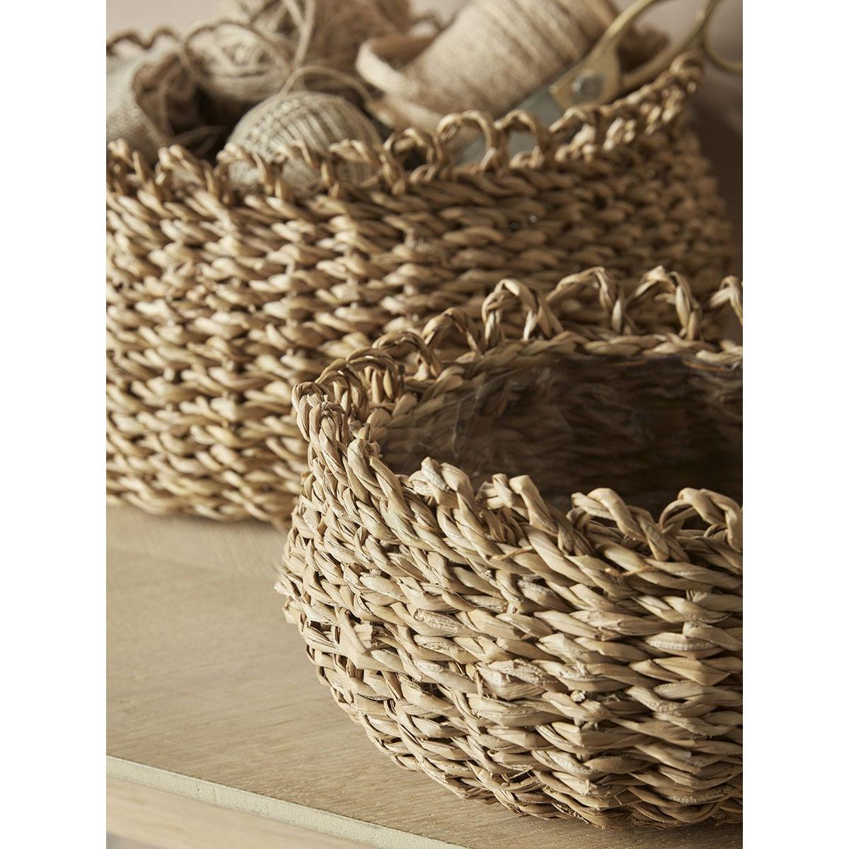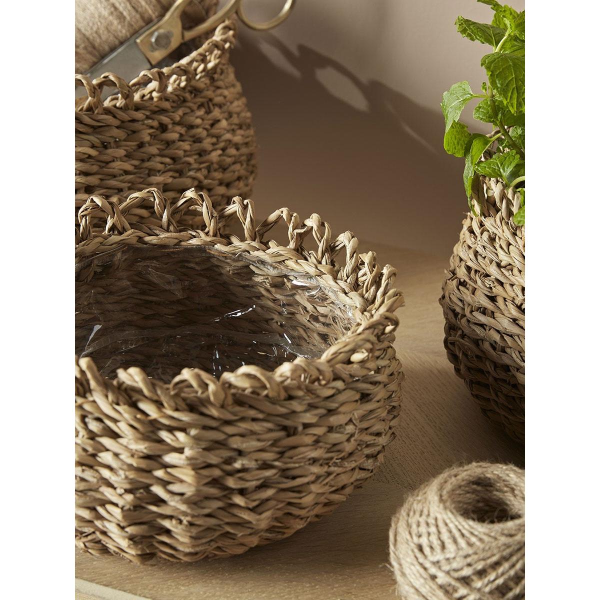 Delicately woven from seagrass, this set of four indoor planters adds a wonderful natural touch to your home. A scalloped edge graces these baskets and adds an elegant and dainty finish to the warm, neutral tones of the seagrass. Use as indoor planters to add a pop of greenery to your home, or use as decorative storage baskets to keep your space looking neat and tidy.