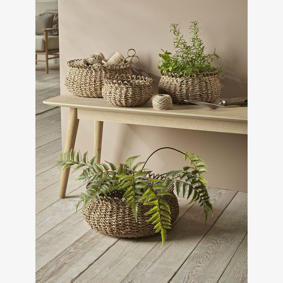 I love these baskets as they bring a natural, textured element to any space, making them versatile for both modern and rustic interiors. They work especially well in understated, neutral settings, adding warmth and visual interest without overwhelming the decor. For styling, I recommend grouping a couple together for a curated look or using them to house greenery both indoors and on outdoor patios. Practical tips include using them for small plants with trailing foliage to let the plants spill over naturally, and they’re perfect for keeping pots tidy and hidden while maintaining a relaxed, organic vibe.