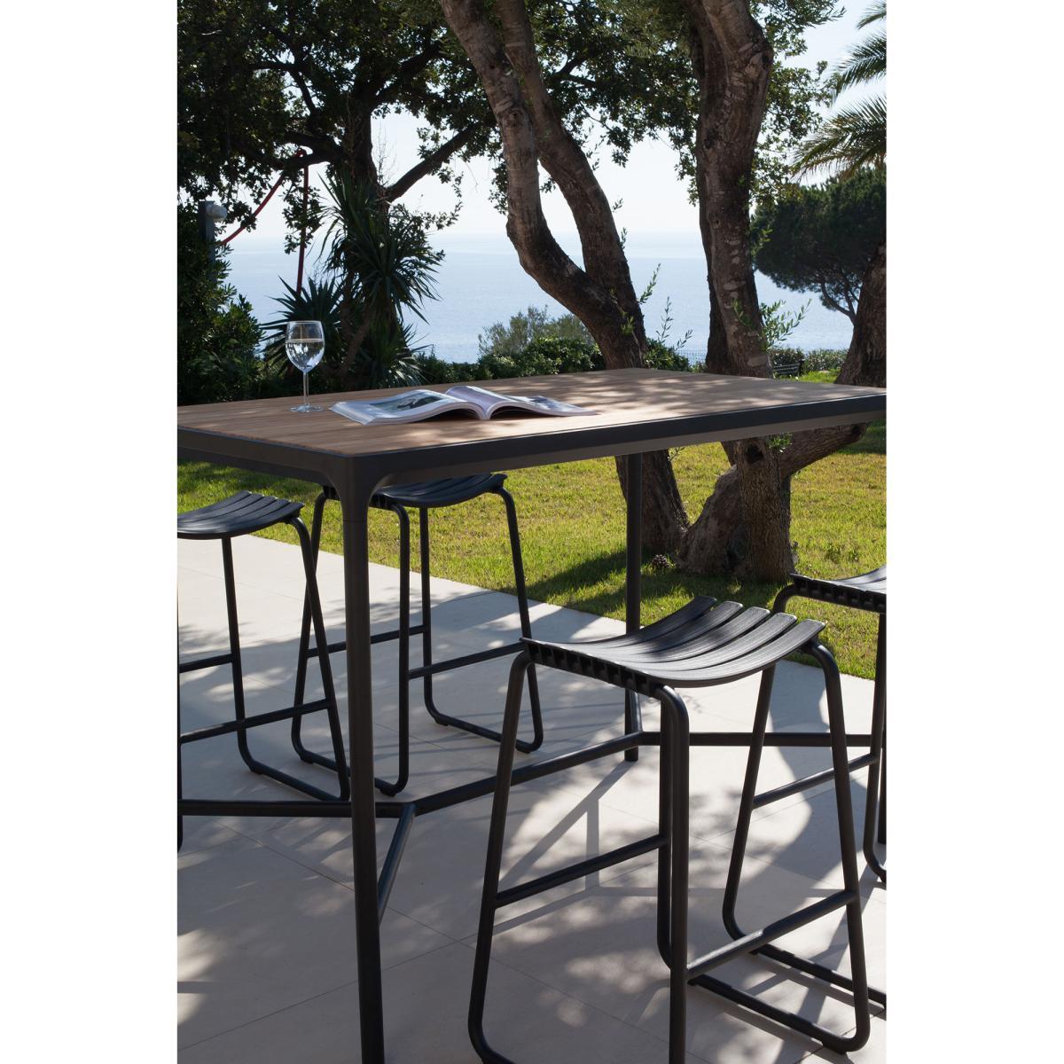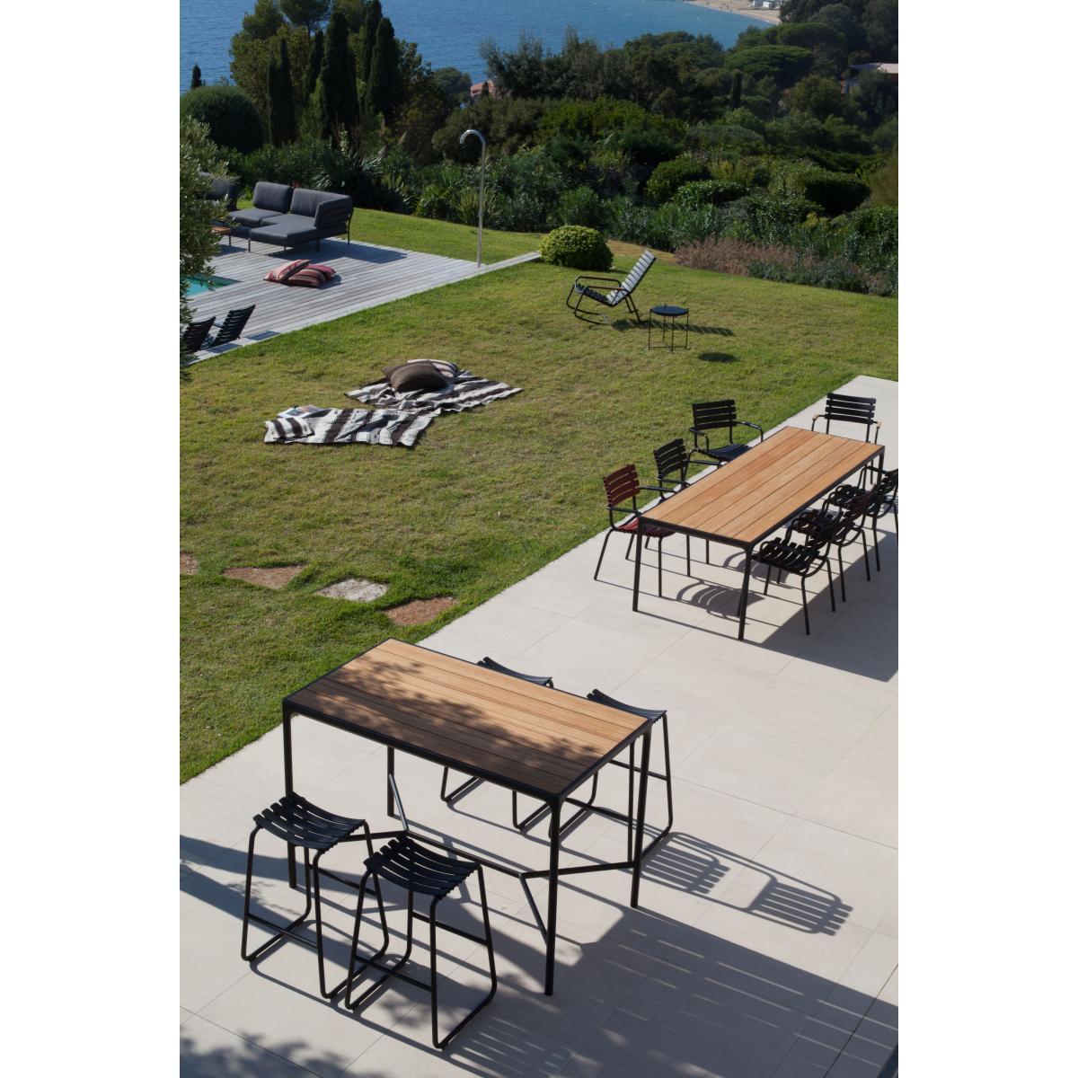 Simple, modern lines for this attractive high table (H 111 cm). The Four’s top is formed by several strips of bamboo, supported by an epoxy-lacquered aluminium structure. The graphic effect of the black base perfectly matches the softness of the wooden top, giving this table a highly sophisticated look. Ideal for taking eating to a higher level, Four can be placed in a kitchen, a dining room or outside. Used in conjunction with some high stools, you’ll have a dining space that’s uncluttered and comfortable. The stools in the Clips collection are ideally suited to the Four table (stools sold separately).