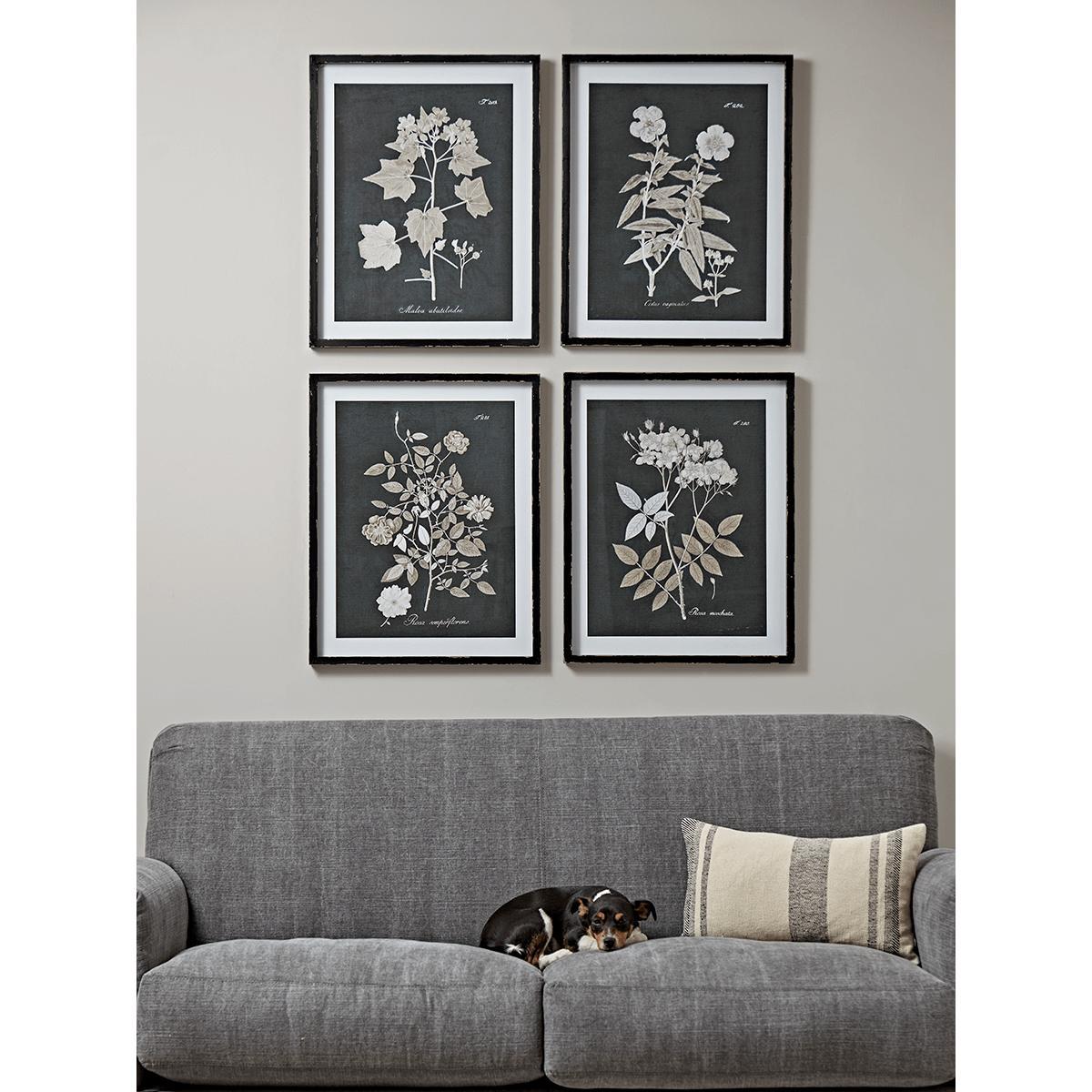 Our set of four framed botanical prints come in a dark toned frame uniquely marked for an aged appearance, one that nods to vintage ebonised wooden frames. Each print comes in a monochrome tone to complement the modern home, whilst bringing an authentic feel by their very beautiful subject matter.