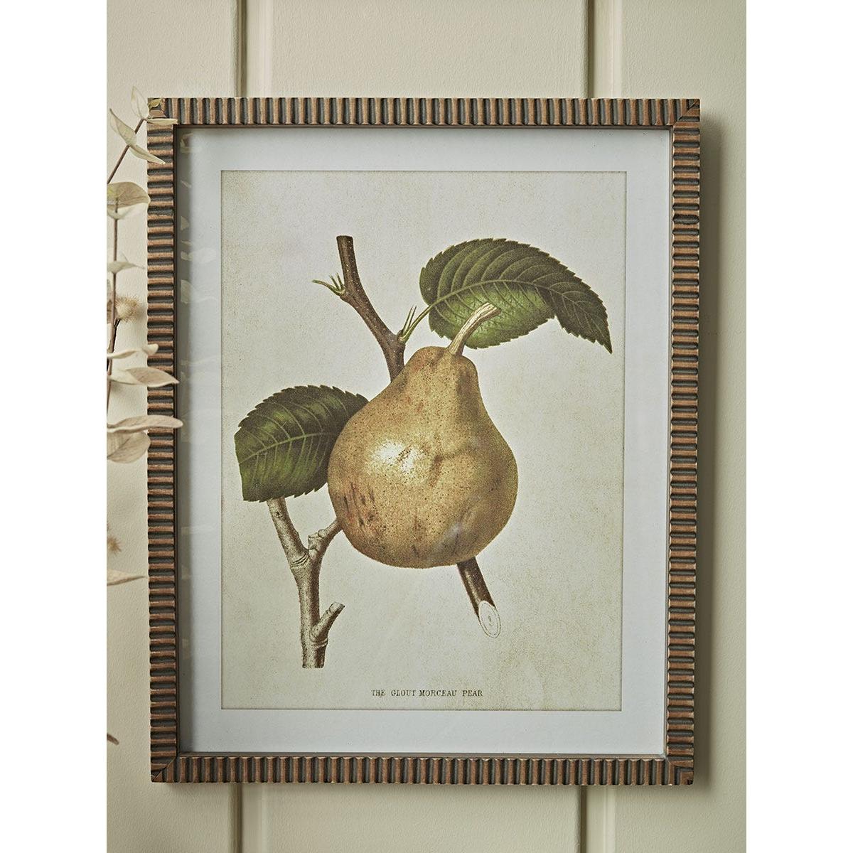 Set in unique striped wooden frames, this set of four pear prints add an elegant and quirky feature to your home. On a neutral background, the pears add a subtle touch of colour to your space whilst also having a gently aged vintage style design, perfect for adding some individuality to your home. Explore the rest of our English Rustic collection.