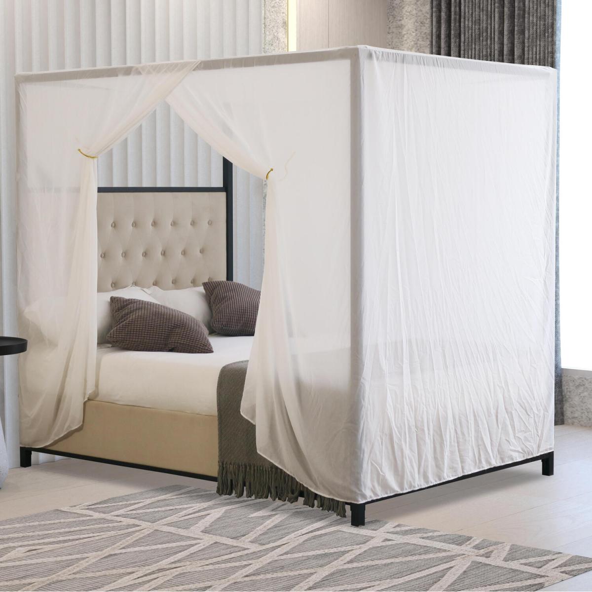Four Poster Metal Bedframe with Plush Velvet Buttoned Headboard - Cream / King