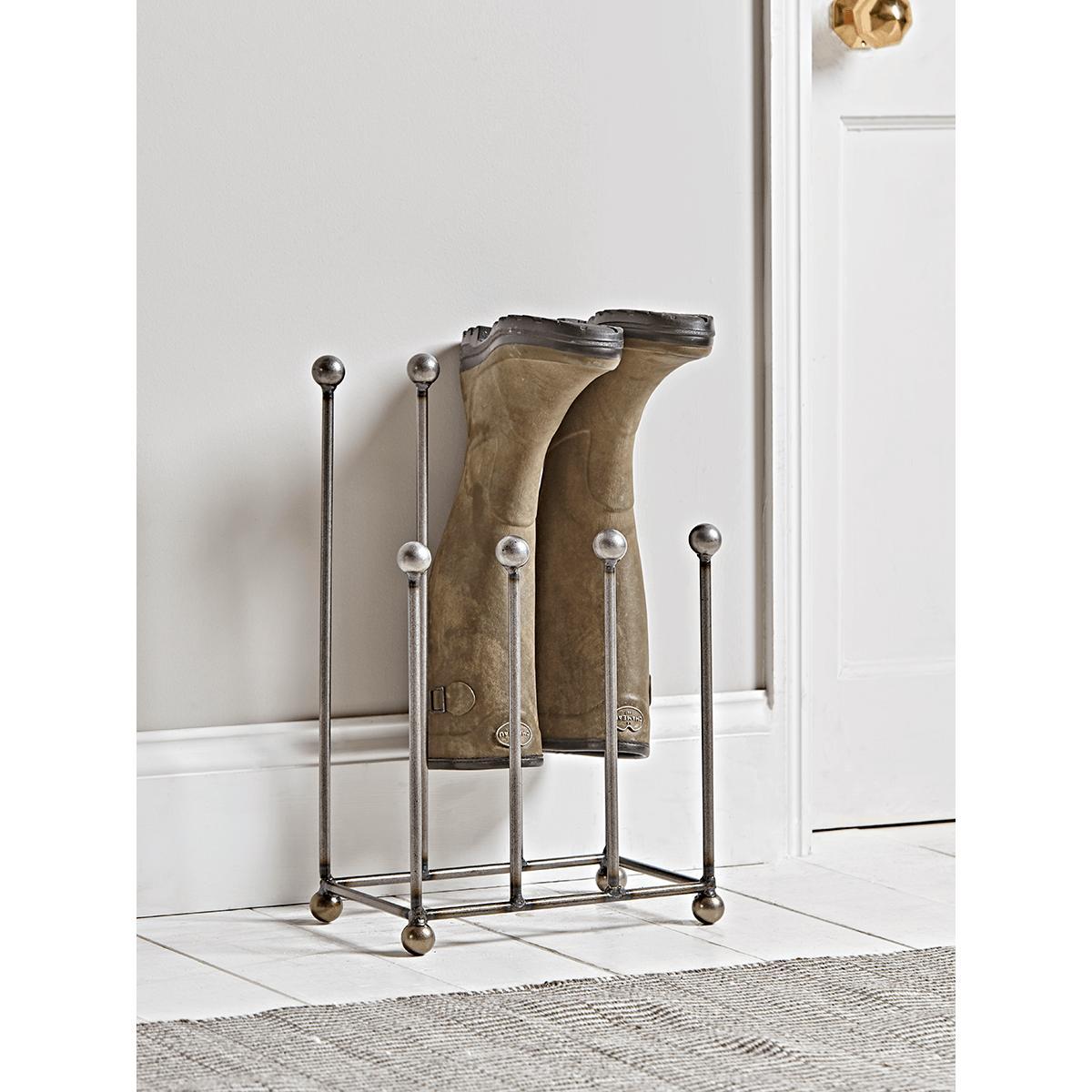 Perfect for storing wellies and walking boots, our simple boot rack features space for four pairs, with four tall spokes at the back and four shorter spokes at the front. Need more space? Take a look at our. Six Pair Metal Boot Rack.