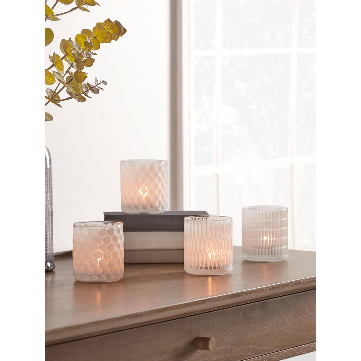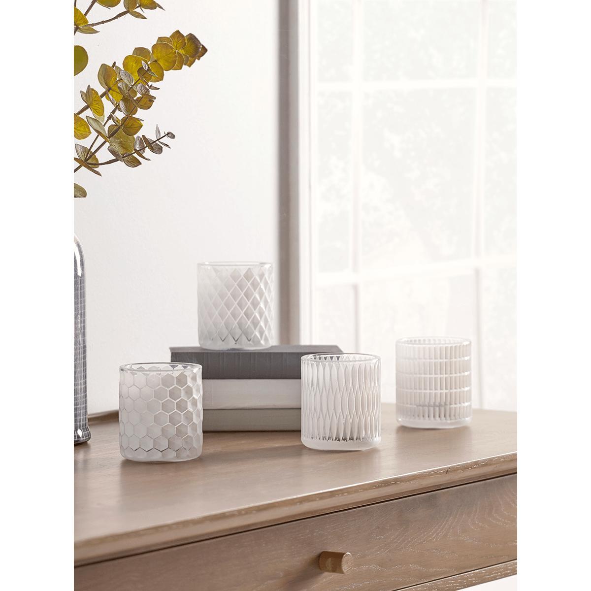 Four White Geometric Tealight Holders