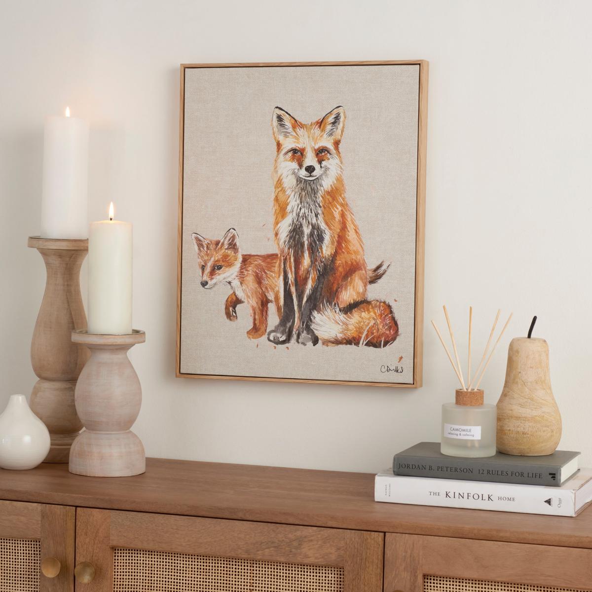 This stylish capped canvas wall art features a fox and baby, perfect for adding a statement piece in any room of your house, with a modern colourway that will complement an array of home decors.
