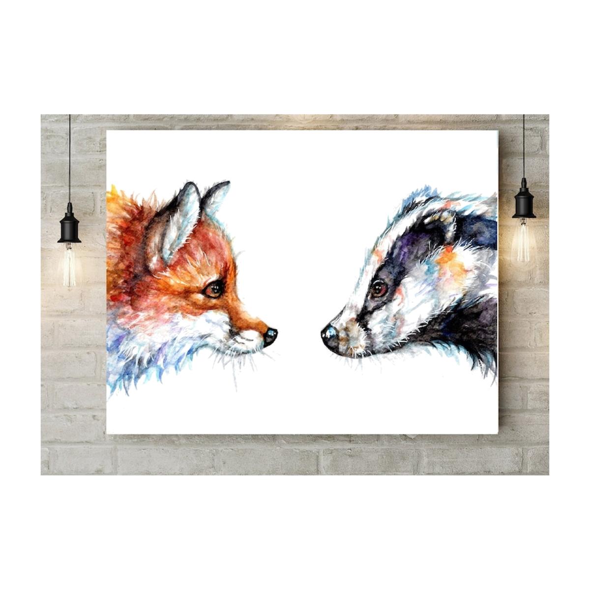 Inspired by the beauty of nature, Be Coventry originally painted this whimsical scene of a Fox and Badger in professional watercolours. Now recreated in print on a box canvas, this artwork will enhance any room in your home. The watercolour design is printed onto 260gsm Matte Polyester canvas, and attached to quality pine timber. The canvas is taped on the rear and is supplied with a wall-hanging kit.