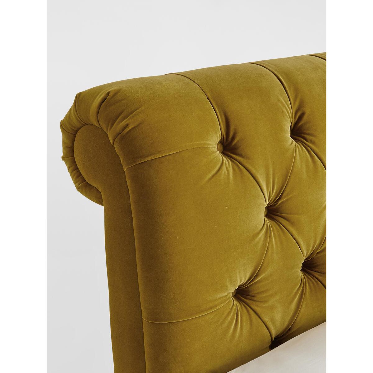 The foxcote bed has a timeless, plush appeal thanks to its velvet upholstery and understated silhouette. I love how the ochre hue adds warmth and richness, making it a statement piece in both modern and traditional interiors. It works particularly well in schemes that lean towards mid-century, eclectic, or vintage styles, but can also bring a cosy touch to contemporary spaces. For styling, consider layering with textured bedding and matching or complementary cushions to enhance its luxe feel. To keep it looking pristine, opt for a protective spray and avoid placing it in direct sunlight. Overall, it’s a versatile choice that elevates any bedroom with its elegant yet inviting character.