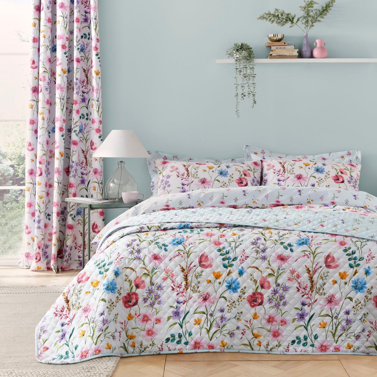 * Made from 100% Polyester Microfibre* Bright floral design* Reversible design* Machine Washable* Corresponding bedding and curtains available to purchase separately Add a touch of botanical elegance to your home with the Foxley Bedspread. Featuring a bright floral design, this charming bedspread can be layered with an array of bedlinen to create a cosy and inviting atmosphere. Made from 100% polyester microfibre, it is soft, durable, and easy to care for. The reversible design offers versatility, while the easy-care fabric allows for machine washes and minimal ironing required. Additionally, this bedspread coordinates perfectly with corresponding bedding and curtains available for purchase separately.