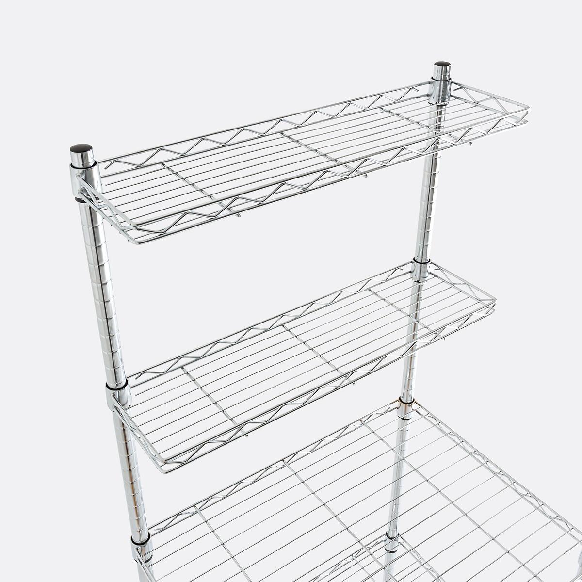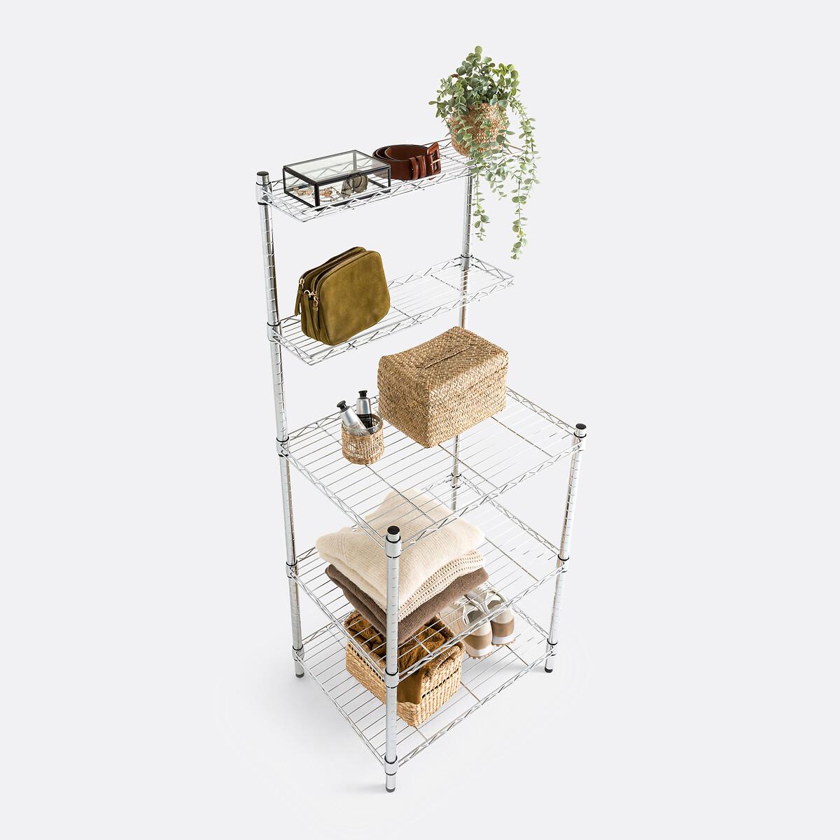 The Fozzo steel metal shelving unit. With its 5 shelves, it is helpful for storing clothes and accessories.