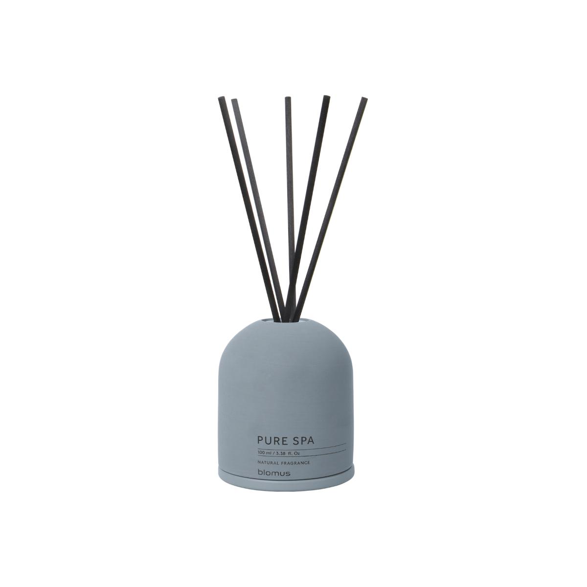 Fraga fragrance sticks 100 ml from Blomus is a set of fragrance oil, five reed sticks and a glass bottle with a concrete cover. The reusable holder has a cylindrical design that softens at the top, which means that the scented sticks are collected in the small opening and distributed in a nice way. This set of scented sticks comes in several luxurious scents where every scent has a unique coloured holder.