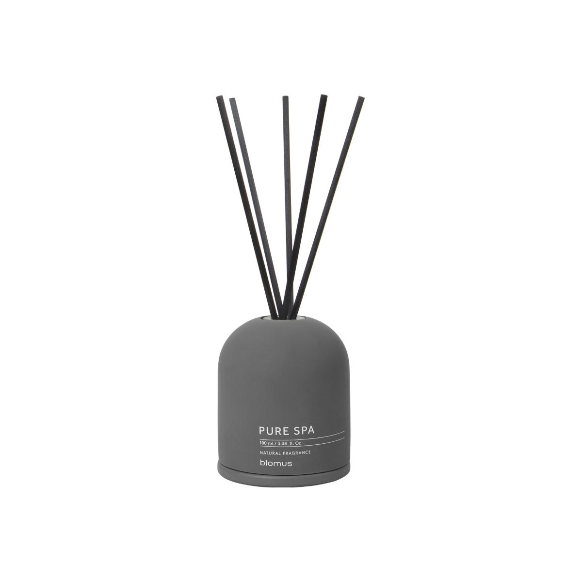 Fraga fragrance sticks 100 ml from Blomus is a set of fragrance oil, five reed sticks and a glass bottle with a concrete cover. The reusable holder has a cylindrical design that softens at the top, which means that the scented sticks are collected in the small opening and distributed in a nice way. This set of scented sticks comes in several luxurious scents where every scent has a unique coloured holder.