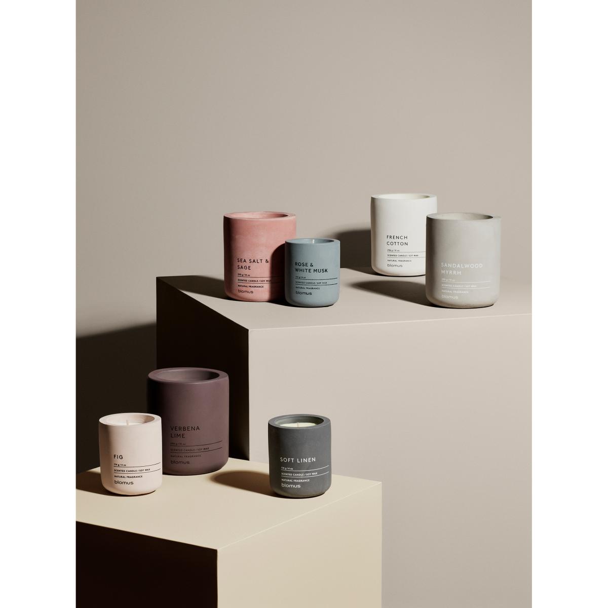 Fraga scented candles 24 hours from Blomus is handmade from environmentally friendly soy wax with natural fragrances without toxins and without palm oil. Another positive property of scented candles is that they produce very little soot. This concrete candle holder has a minimalist cylindrical design and fits nicely on the dining table or the coffee table. Choose between different smells and colours of scented candles.