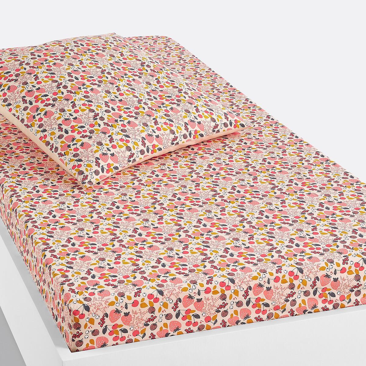 Transform your child's bed into a beautiful field of strawberries with this delightful duvet cover from our Fraise collection. Plump, juicy strawberries decorate the 100% cotton fabric, promising the very sweetest of dreams!Cotton is part of our daily lives. We love it for its suppleness and softness. Easy Care, it is ideal for the beds of young and old alike!Product Details • 100% cotton • 144 thread count • Strawberry print • For mattress height 25cm. Shop the full Fraise range online. Care Advice • Machine washable at 60°C • By washing your laundry at 40°C instead of 60°C, you limit energy consumption. Dimensions • 90 x 140cm: Adjustable bed • 90 x 190cm: Single • OEKO-TEX® Standard 100. Standard 100 certification by OEKO-TEX® tests textile products for harmful substances via an independent, international label.
