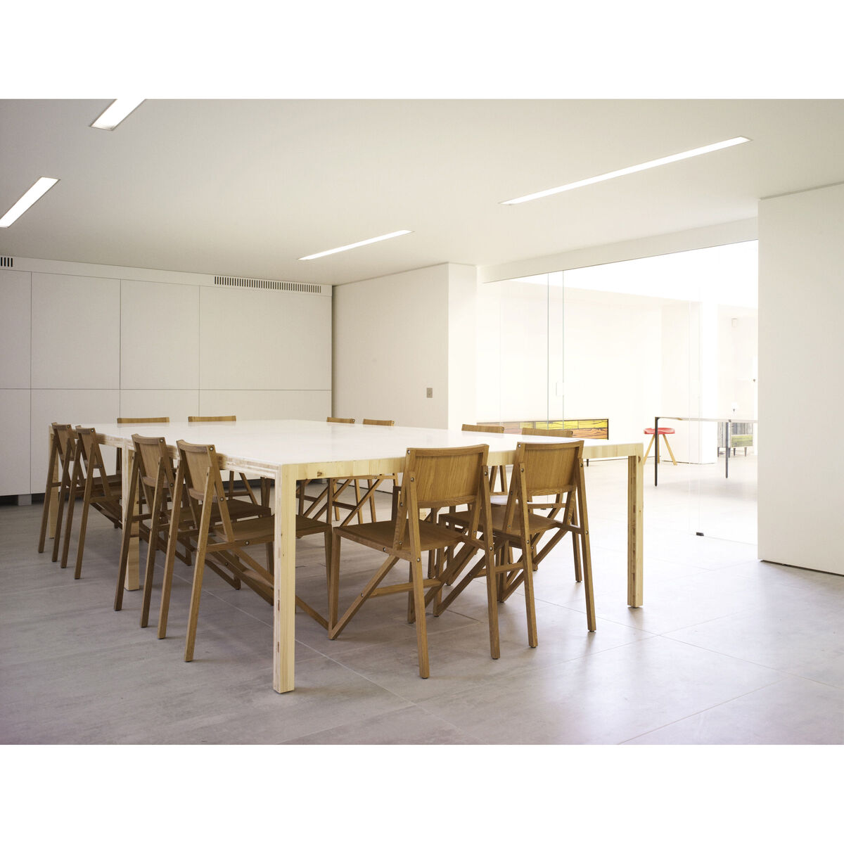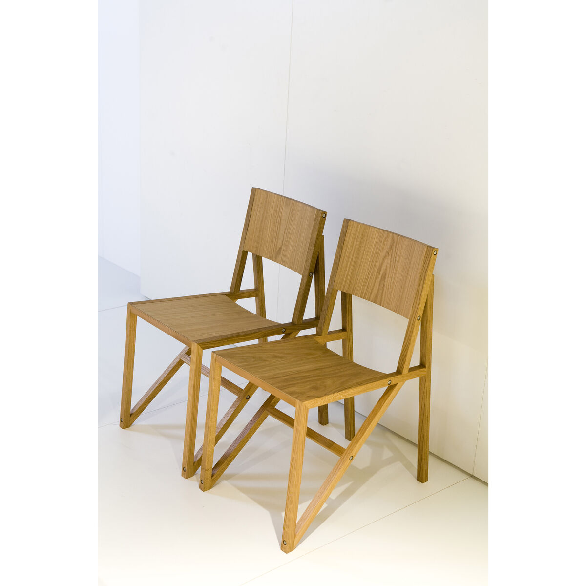 The perfect tension of angular lines of the Frame chair perfectly illustrates the bold style of Dutch designer Wouter Scheublin. Passionate about mechanics, his creations present complex assemblies. Evoking traditional woodwork structures, the Frame chair consists of a multitude of pieces of wood legibly assembled using the different forces of traction and compression. Like a woodwork framework, the Frame presents a direct and immediate construction that gives an idea of its manufacturing process. The curved seat and back guarantee good sitting comfort.