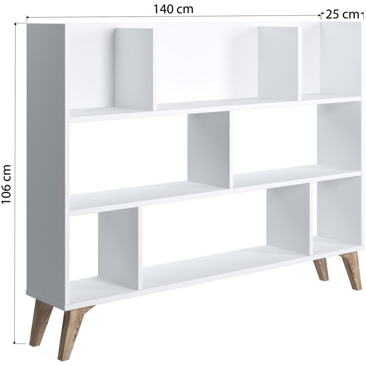 Ruumstore Frame Dion large bookshelf is 140cm width with 3-Tier, bookcase with open shelves. Cozy design with its wood frame. Very easy to assemble with minimum tools. The Frame Dion library, which has a top shelf completely backfigner and attracts attention with its geometric compartments, offers a stylish design alternative for the biggest needs of the houses. Whether you have any goods you want to store by exhibiting your books or decorative items or by exhibiting it, you will bring the style and function to your home thanks to Frame Dion. Stylish with efficient storage Frame provides an elegant corner in your room. You can place it to any room and use it as bookcase or display unit as well. It is easy to place in small spaces. Customer assembly required Our products have been shrinked on both sides as internally and externally to prevent the damages. All the packages have been quality tested. Accessories in the product images are for decoration purposes and are not included in the price.(W x D x H): 140 x 25 x 106