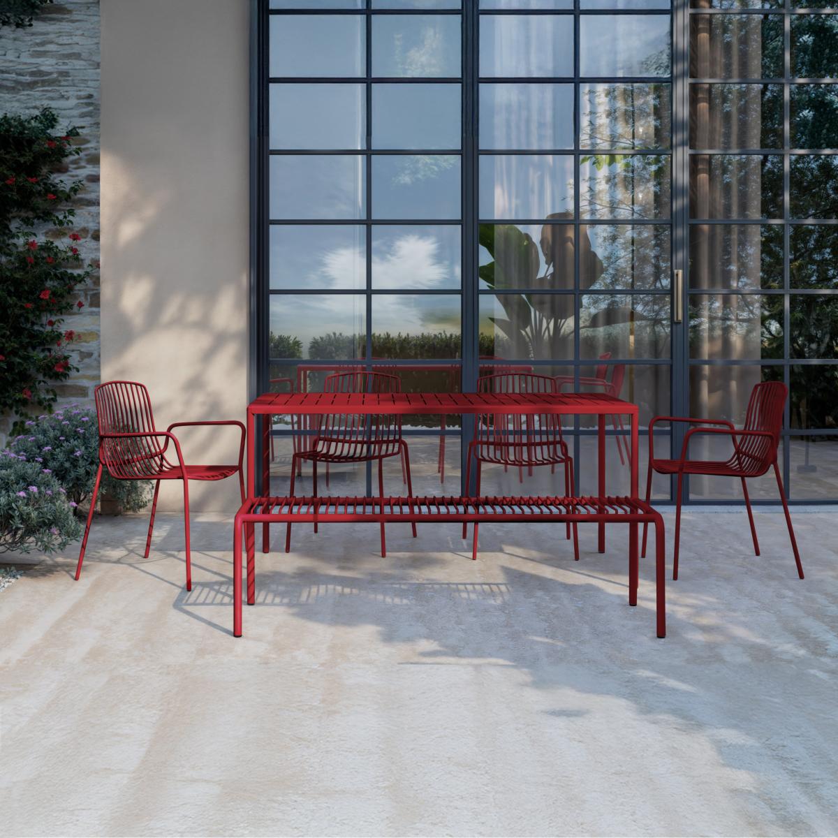 Take your outdoor dining to the next level with this Frame Garden furniture set, featuring our 6-Seater Frame Metal Garden Table, two of our stackable Frame Metal Garden Chairs with Armrests, two of our (also stackable) Frame Metal Garden Chairs and finally our Frame Metal Garden Bench. With it's innovative design, all the furniture in this set is lightweight, stackable and weatherproof ensuring years of enjoyment. The table is also easily assembled and disassembled, perfect for storing. Choose from Cream, Olive Green, Berry Red or Black and check out our other garden furniture sets to find what suits your outdoor space the best. Weatherproof, stackable and lightweight. Simple to assemble and disassemble for ease of storage. Laser-cut ‘slats’ on the table prevent water from pooling on the table surface and make it easy to clean. Comfortable ergonomic shape Made to last from resilient steel with a rust proof finish, the Frame range is low maintenance so you can enjoy it year after year. Exclusively designed in England, masterfully crafted in Italy.