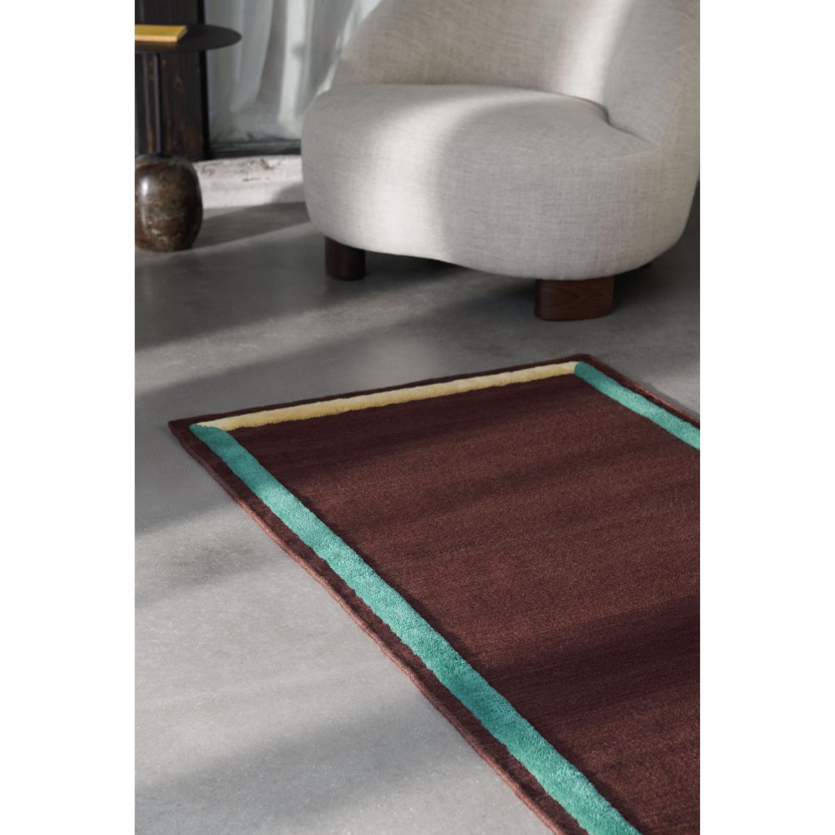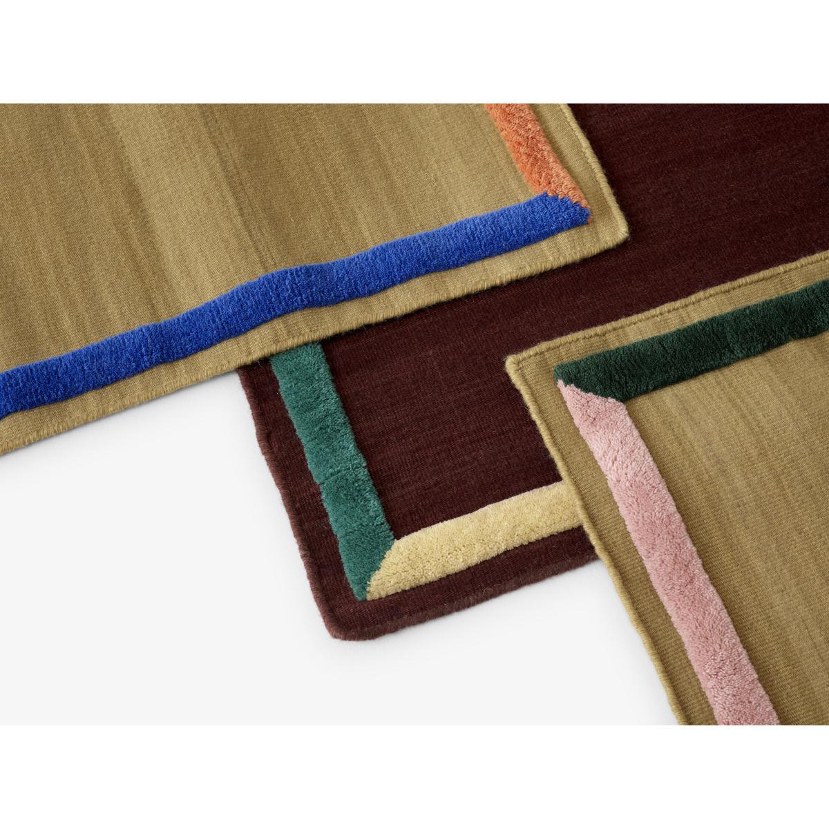 Handcrafted from 100% New Zealand wool, this rug combines two weaving techniques. It combines vibrant, multicoloured hand-woven borders with a monochrome kilim centre. With its embossed bands in vibrant shades, the Framed rug brings a touch of colour to your decor without overloading the piece. The result of expert know-how, the Framed rug is an artisanal creation that comes in an elegant colour palette. With its different padded heights, it introduces a subtle three-dimensional, tactile detail into your interior.