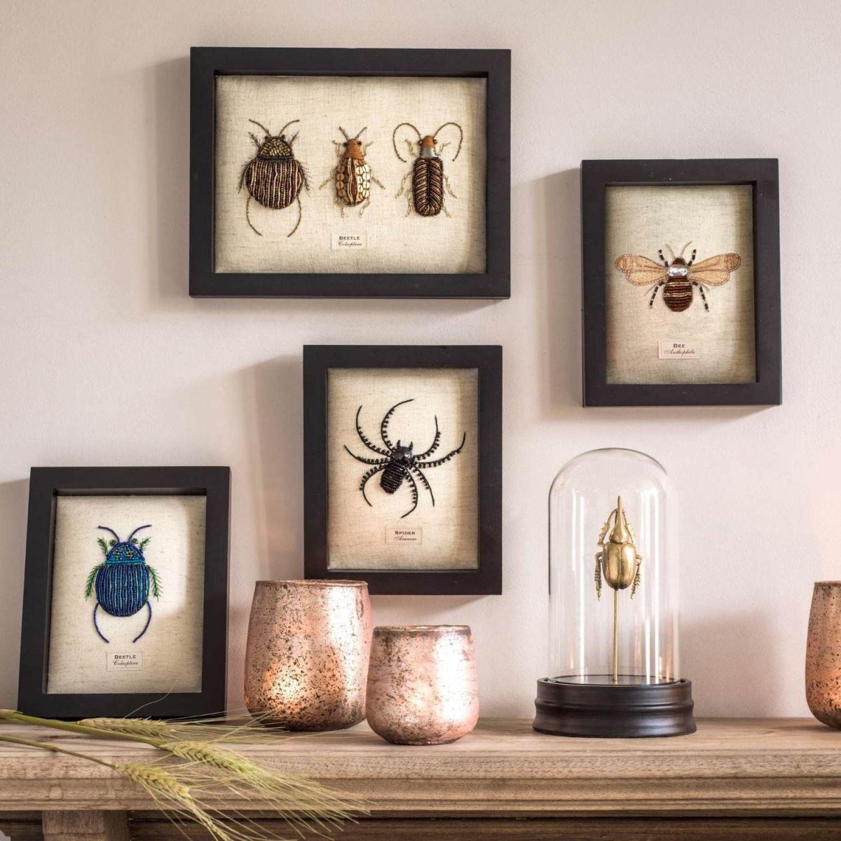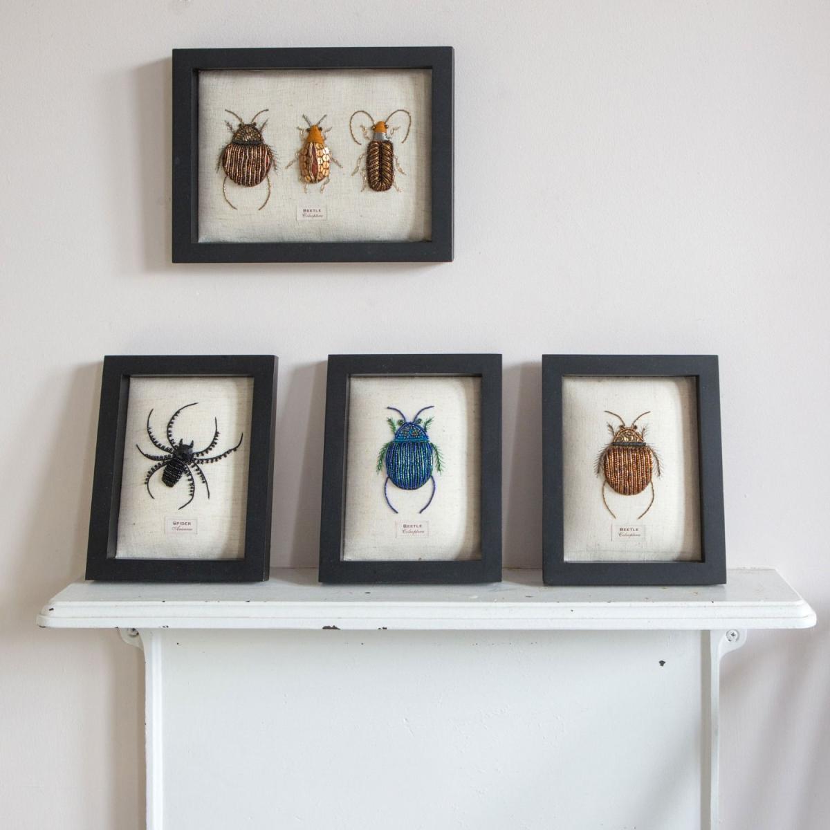 I love the beetle trio as a piece of framed embroidery - it adds a unique, textured element to any wall. It works particularly well in eclectic, boho, or nature-inspired interiors, where its naturalistic theme can enhance the overall vibe. For styling, consider placing it above a sideboard or console table, paired with other botanical or natural-world objects, to create a curated look. Practical tip: keep the surrounding decor minimal to let the embroidery details stand out and swap it to different rooms to bring a touch of quirky sophistication wherever needed.