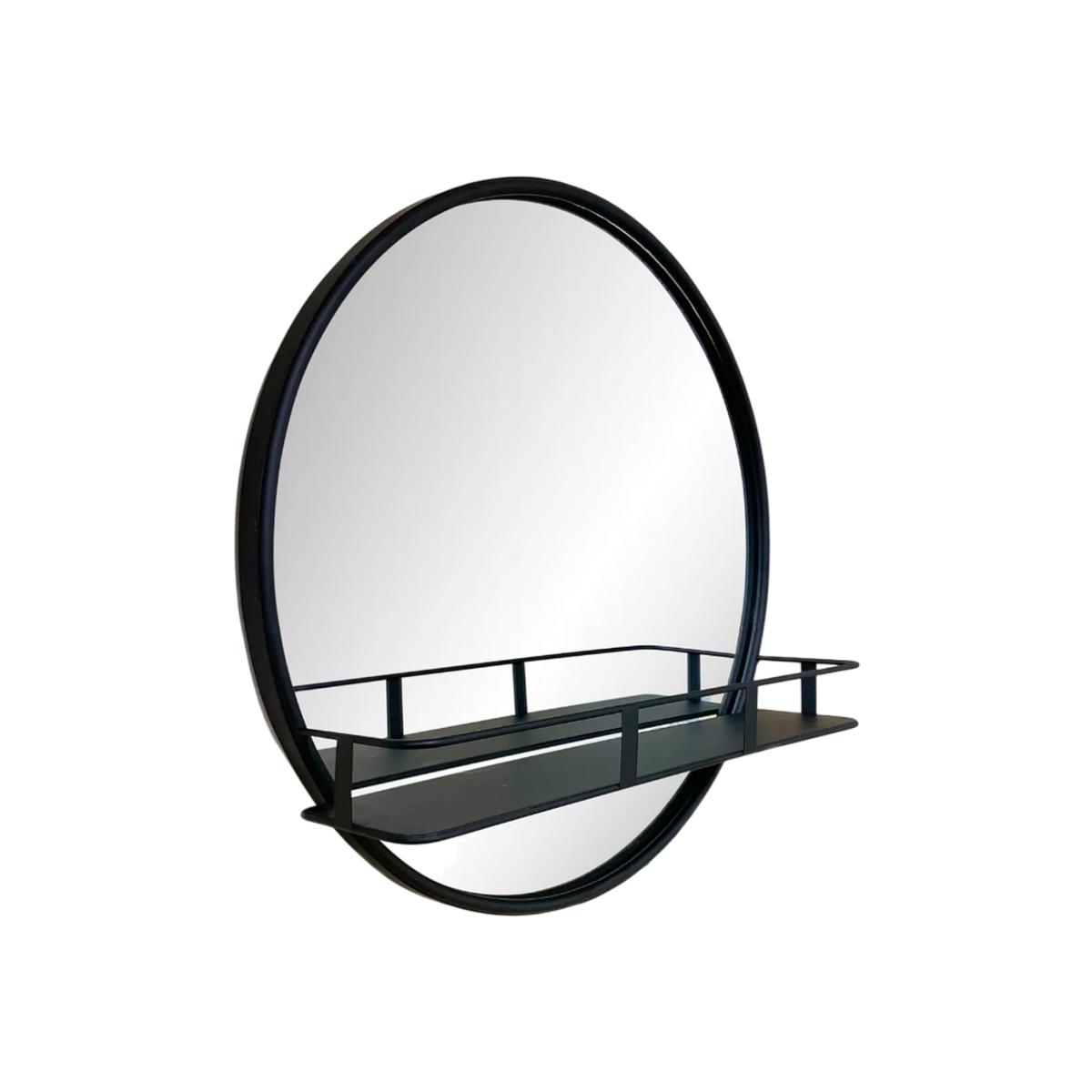 Framed Mirror With Shelf - Black