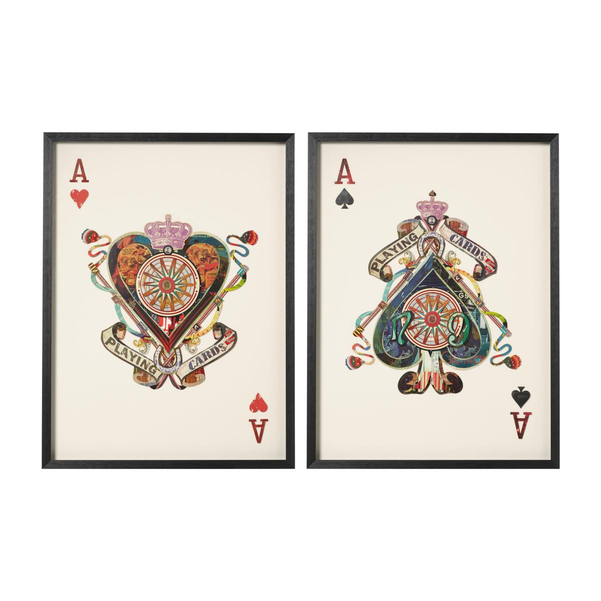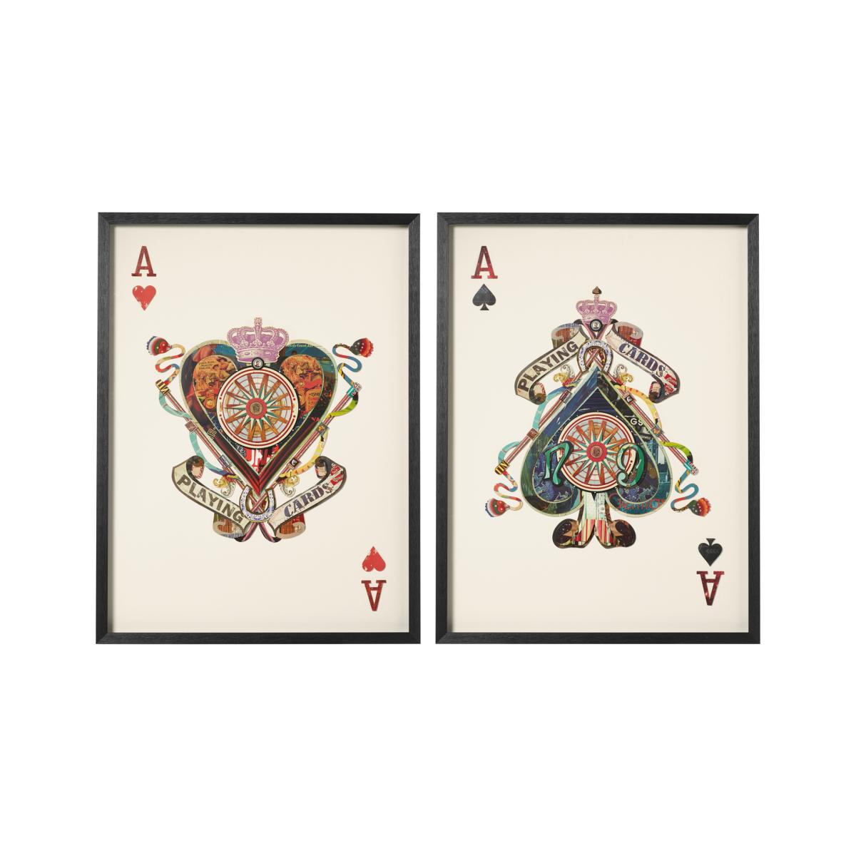 Framed Pair of Ace of Spades & Hearts Collages - Multi