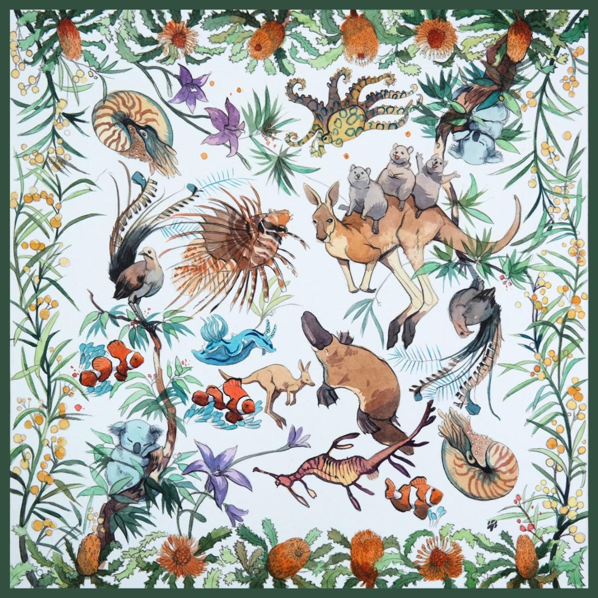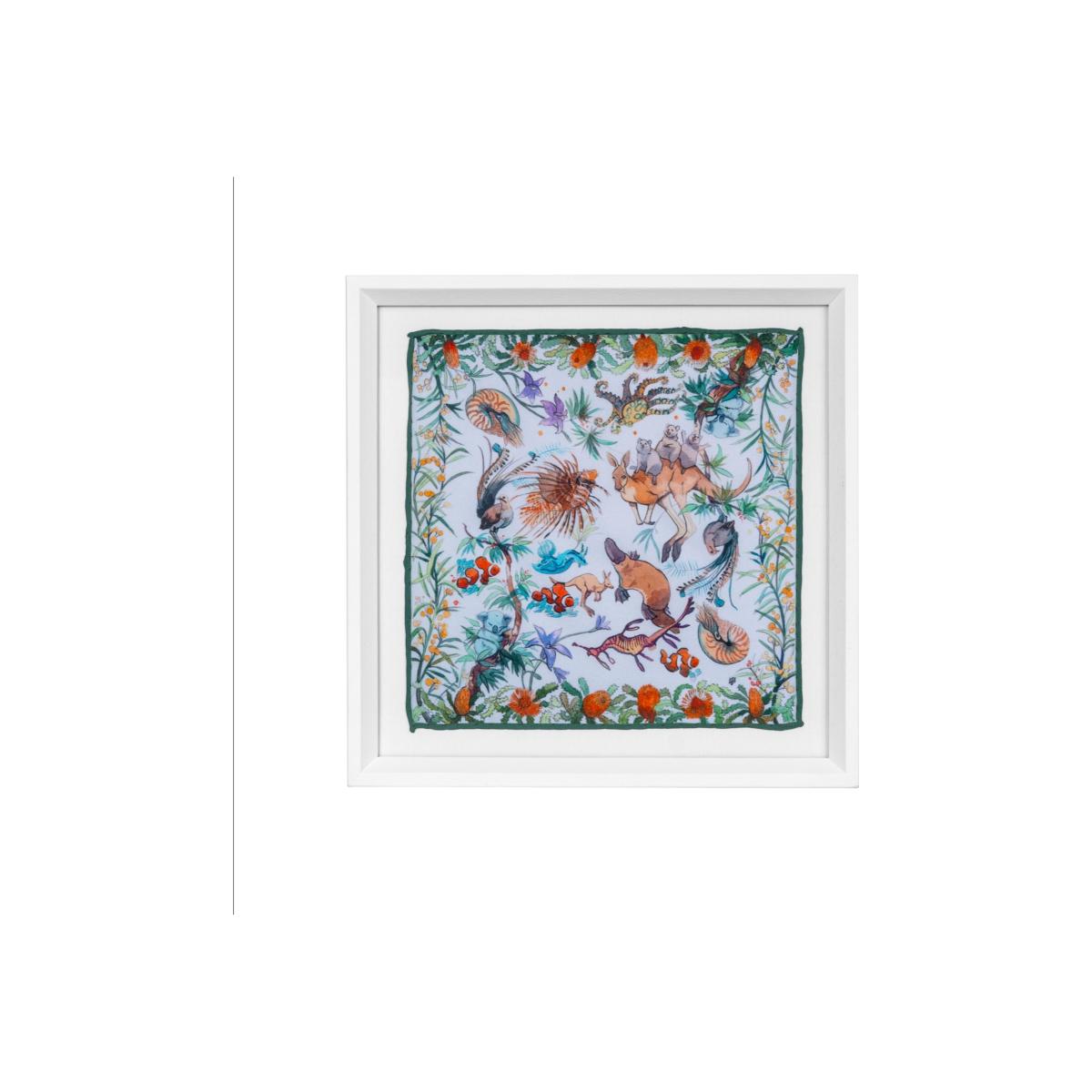 100% Ayous Tree - Wooden Frame with 100% Silk Scarves ''24 x 24'' cm Designed by Deniz Defne Acerol. Inspired from Australia. All of our products are illustrated by hand and purposefully designed to inspire feelings of wanderlust. We hope you enjoy all of our collections. We frame our wanderlust illustrated scarves from UN POCO scarves collections to make them design art decoration for your home and launched it in 2020 as Un Poco Art. We hope our 100% Ayous tree frame with silk scarves will be in the most pleasant place of your home.