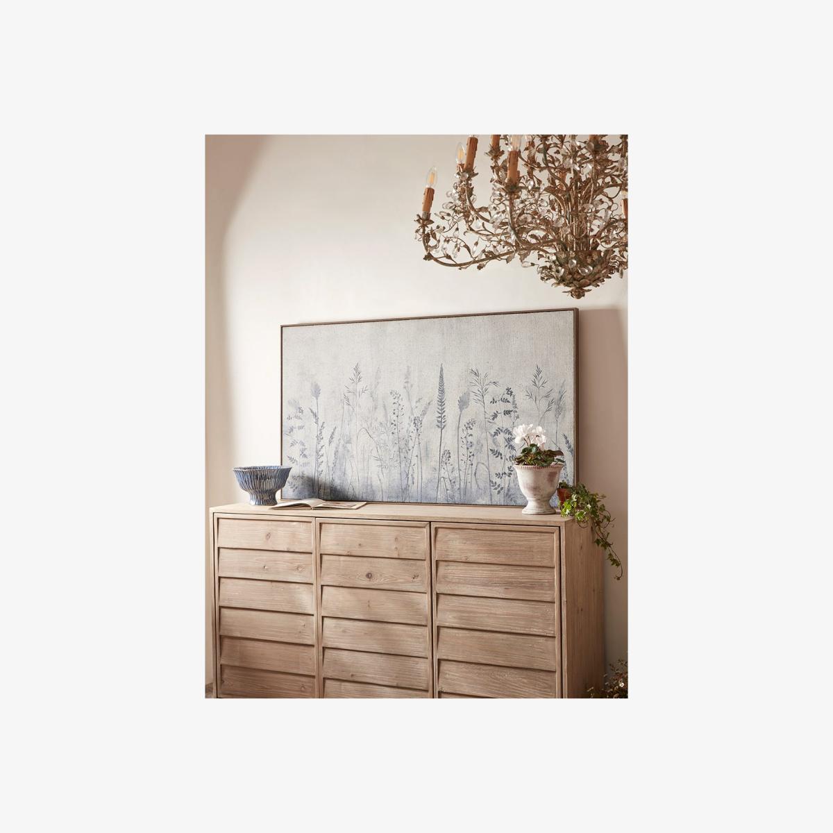 I love the natural texture of the wildflower print paired with the hessian frame-it adds a lovely rustic, organic touch that works especially well in relaxed, country-inspired interiors or modern farmhouse spaces. It’s versatile enough to sit above a sideboard or console, creating a focal point without overpowering the room. To style it effectively, consider pairing it with other natural materials like wicker, wood, or linen textiles for a cohesive look. For practical tips, ensure it is hung at eye level for maximum impact and consider surrounding it with smaller accessories like ceramic vases or greenery to enhance its earthy charm. This piece works beautifully in living rooms, hallways, or bedrooms where understated, natural decor is desired.