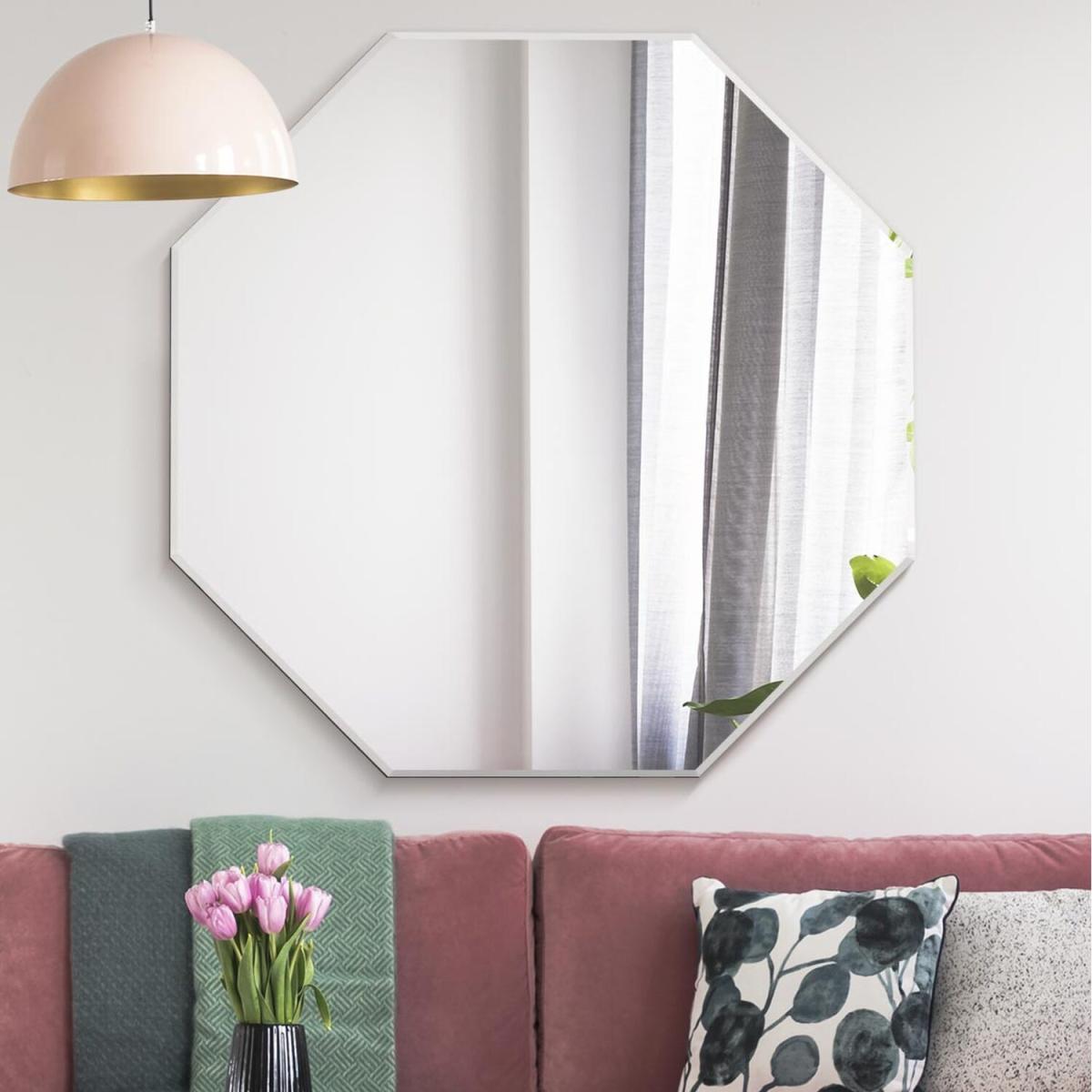 I love this Frameless All Glass Bevelled Octagonal Wall Mirror for its contemporary edge and versatility. The black finish adds a sleek, modern touch that works well in minimalist, industrial, or even eclectic interiors. Its octagonal shape introduces visual interest without overpowering the space, making it ideal above a console table, in a hallway, or as part of a gallery wall. Practical styling tips include pairing it with warm lighting to accentuate the bevelled edges or balancing it with other geometric shapes in the room. It's a great piece to reflect light and create a sense of space, especially in smaller rooms or darker areas.