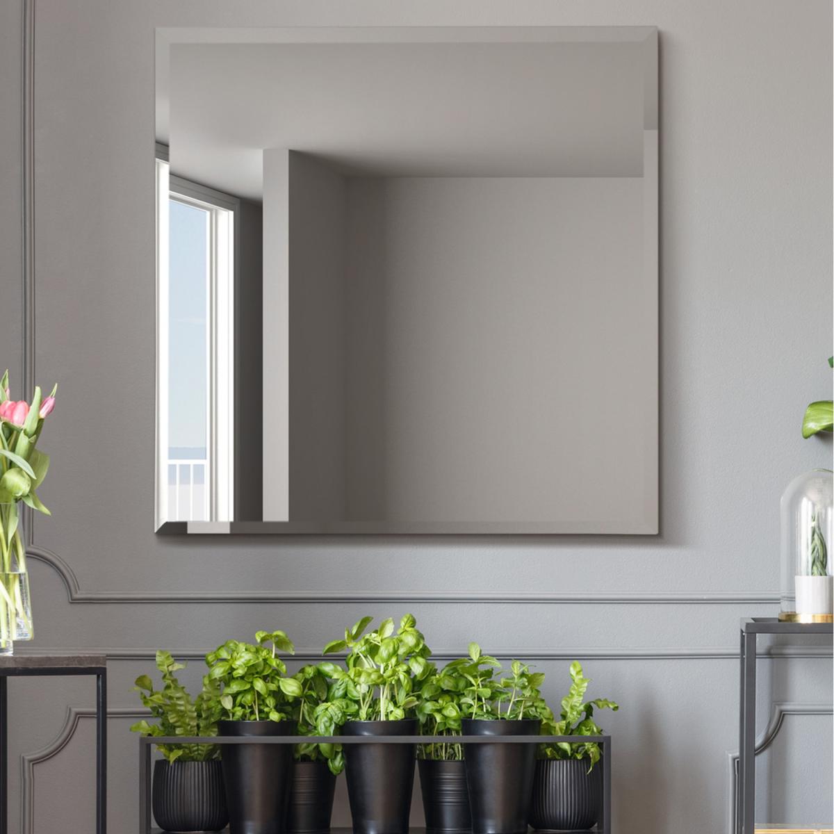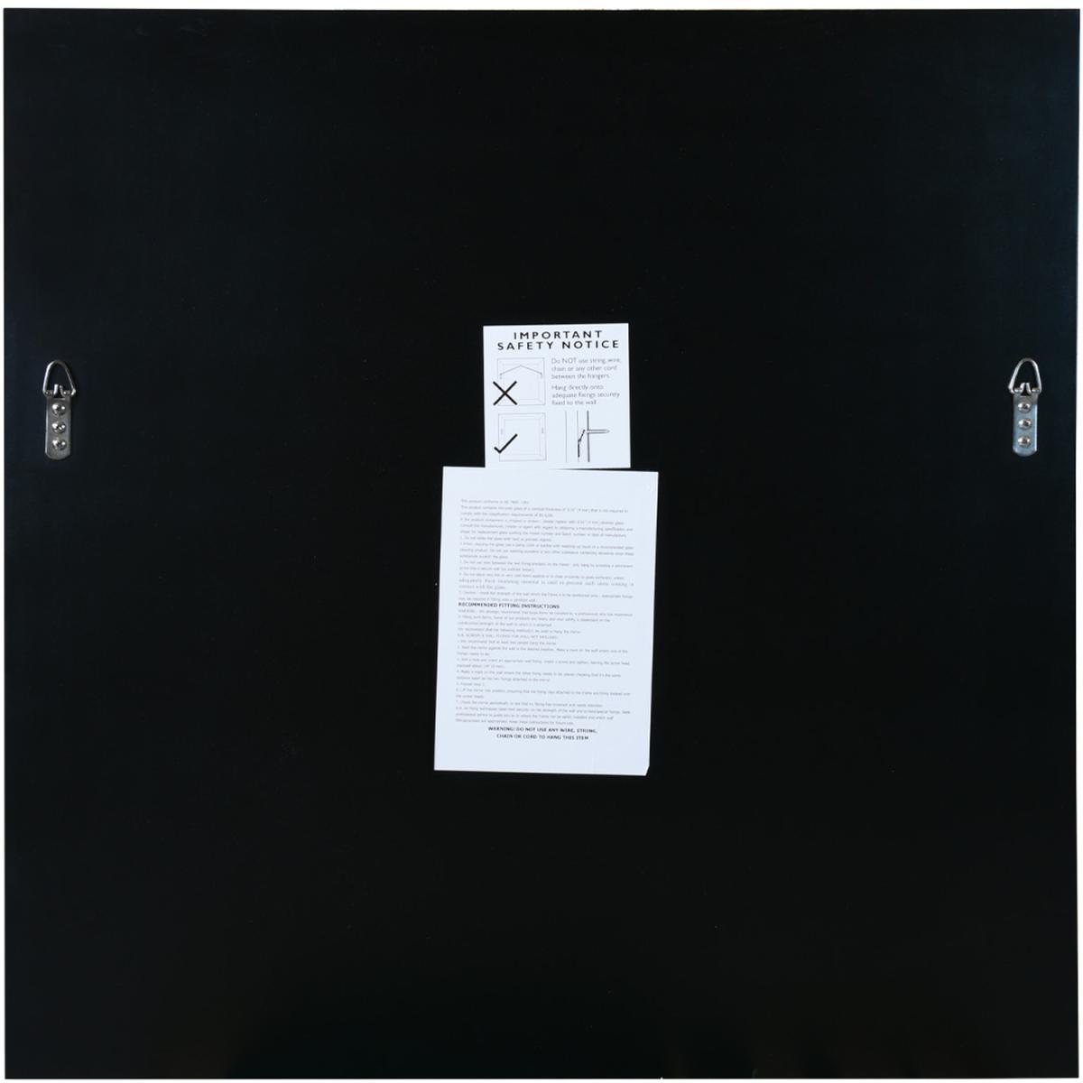 MirrorOutlet Moderni mirror range. Featuring an all-glass bevelled premium mirror attached to a black backing to give that modern look. This square mirror is designed to be wall hung. The mirror comes with hooks for easy wall hanging. Being the very finest quality. This mirror weighs around 10kg.