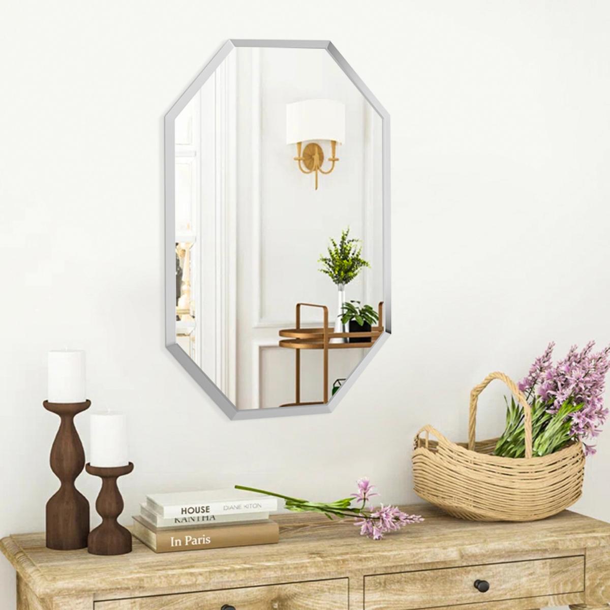 Adopt high-end 4mm thick silver glass mirror, which provides a clear distortion-free reflection, and eliminate the common reflective distortion of low-end mirrors, gives you the best visual experience. Ornate shape with bevelled edges, which are after hand polished to ensure safety and beauty, frosted edge protects well your hands. As a reflective surface, give room a better sense of light and space. The decor wall mirror can be hung horizontally and vertically, either way the large wall mirror will create a wonderful illusion of increased space. Package coming with powerful double sided foam tape. It can be easily installed on smooth walls, latex paint walls, light-hole tiled wall furniture or wooden doors. It is a not only mirror, also be an adornment, making a personalized statement over any bathroom vanity, powder room or on any wall in your home.