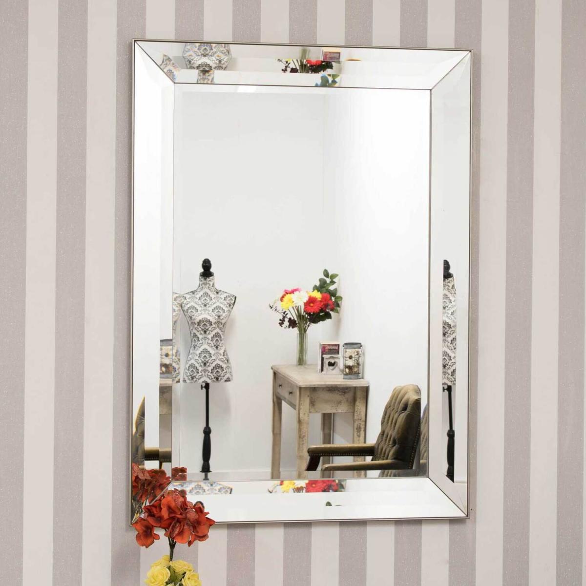 Frameless Large Venetian Modena Modern Wall Mirror 109 x 78cm - Silver