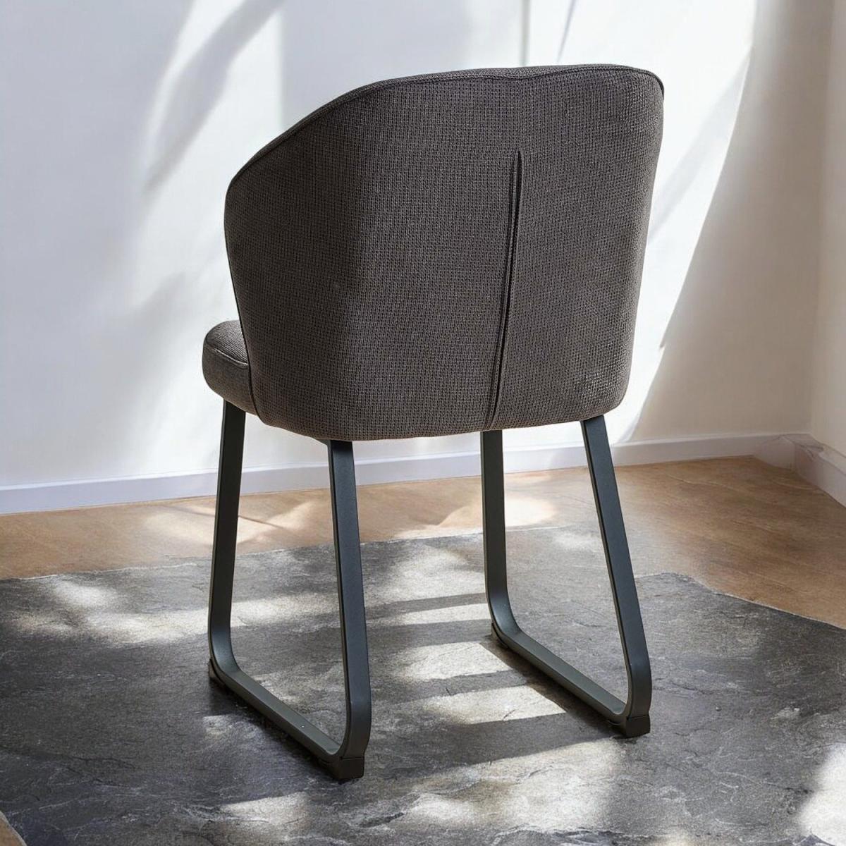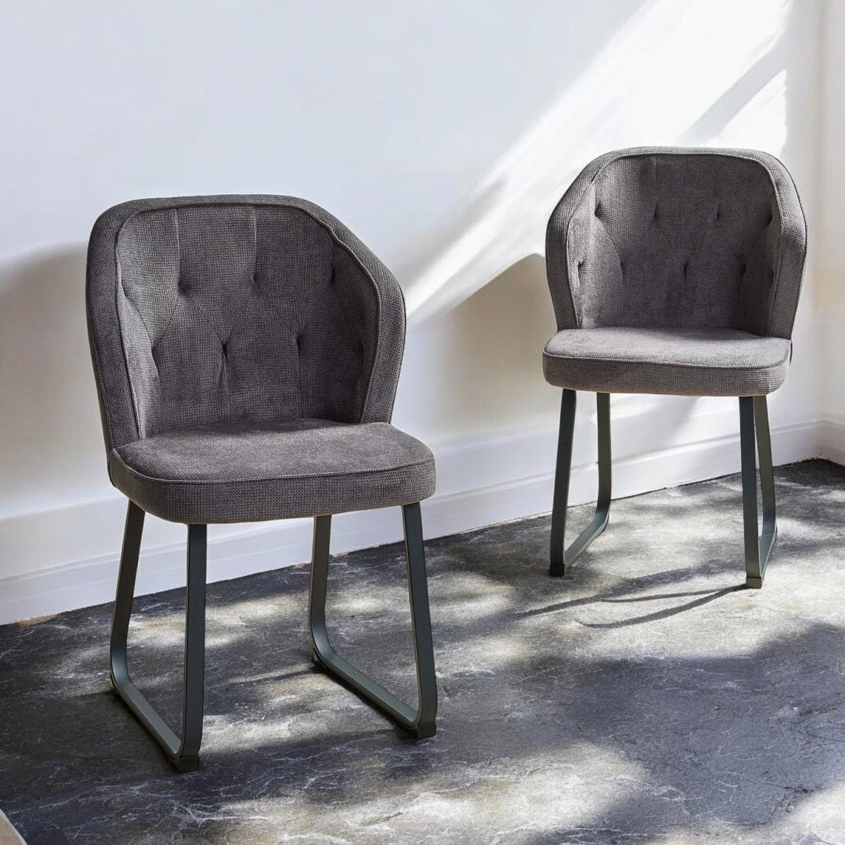 The Frampton Dining Chair in dark grey anthracite fabric is the contemporary solution to dining. With stylish stitched detailing on the soft fabric back, and curved metal legs, this modern dining chair puts both comfort and style at the forefront of the design. Choose from the other Frampton seating options to create a cohesive dining room by pairing this chair with a corner bench or flat bench to provide even more seating for your dinner table.