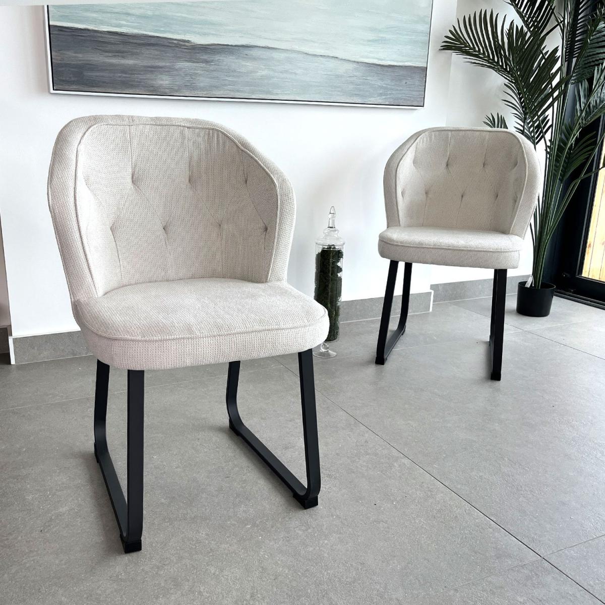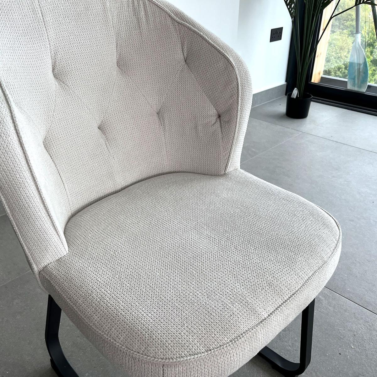 The Frampton Dining Chair is the contemporary solution to dining. With stylish stitched detailing on the soft fabric backs, and curved metal legs, this modern pair of dining chairs puts both comfort and style at the forefront of the design. Choose from the other Frampton seating options to create a cohesive dining room by pairing these chairs with a corner bench or flat bench to provide even more seating for your dinner table.
