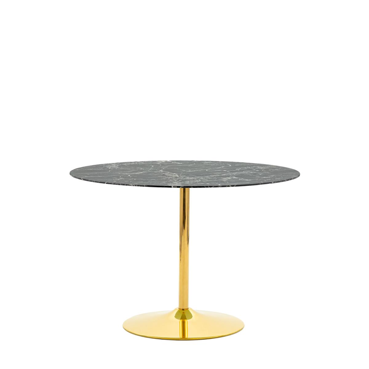 With a sophisticated round faux black marble glass top and smoothly curved gold base, this table is stunningly modern. Seating 4 people, it is great for a smaller space where style is still essential.