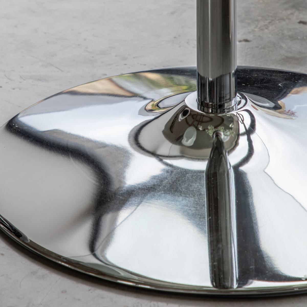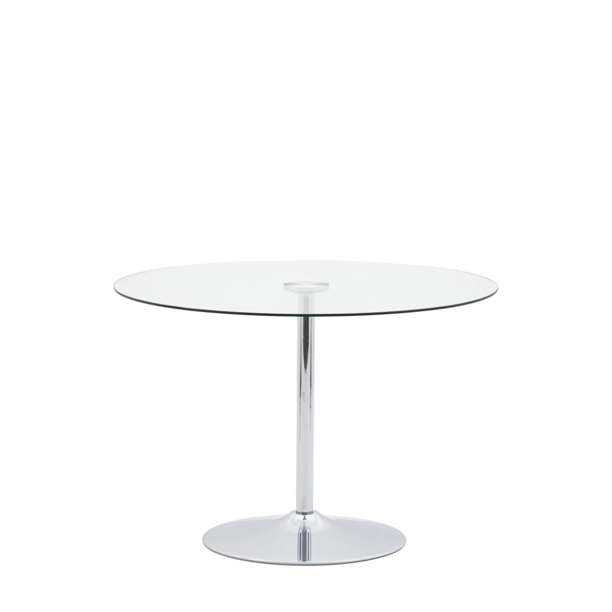 With a sophisticated round clear glass top and smoothly curved chrome base, this table is stunningly modern. Seating 4 people, it is great for a smaller space where style is still essential.