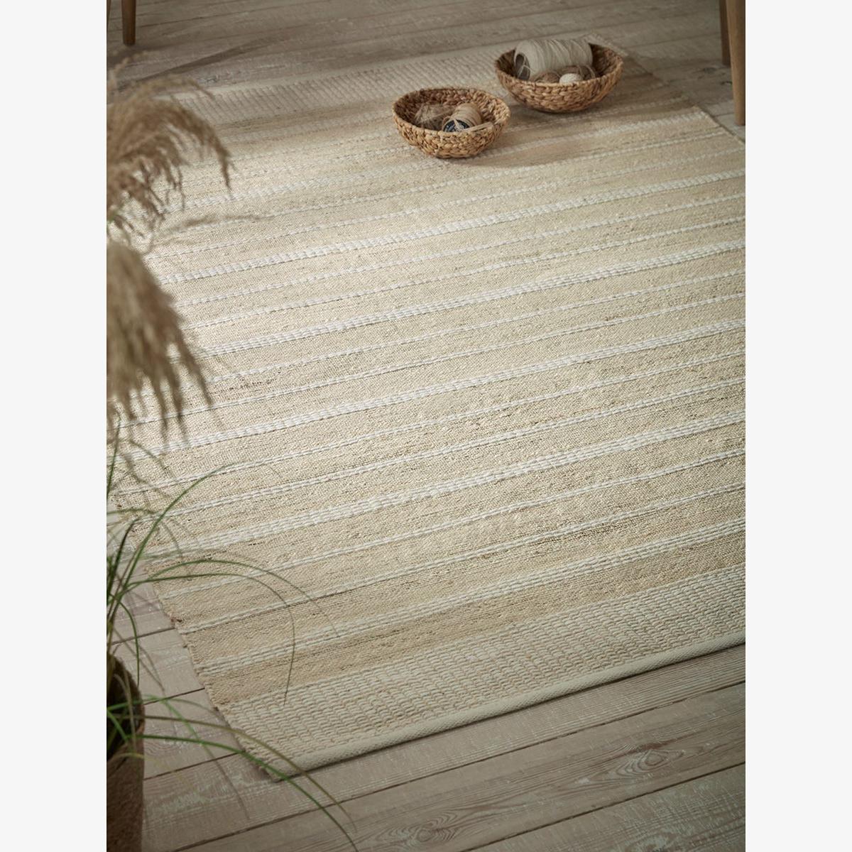 For a rug that oozes minimalist energy, our Franca Rug is the perfect addition to your home. In neutral tones, the delicately woven stripes in white add a further textural depth to the rug, whilst its tufted woolen design creates a warm and comforting feeling underfoot. Place in your living space for an extra level of comfort and cosiness in your home.
