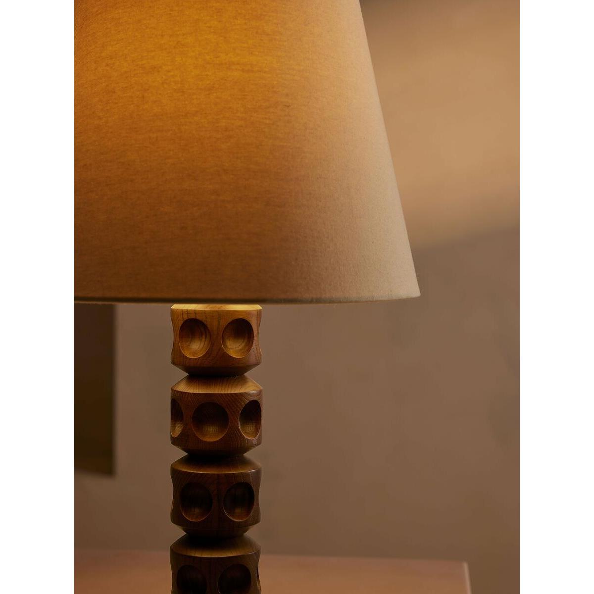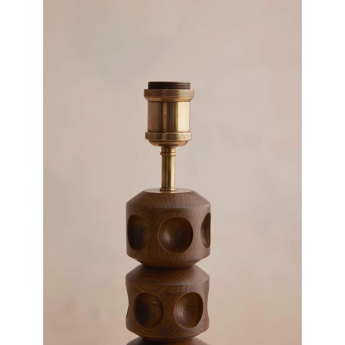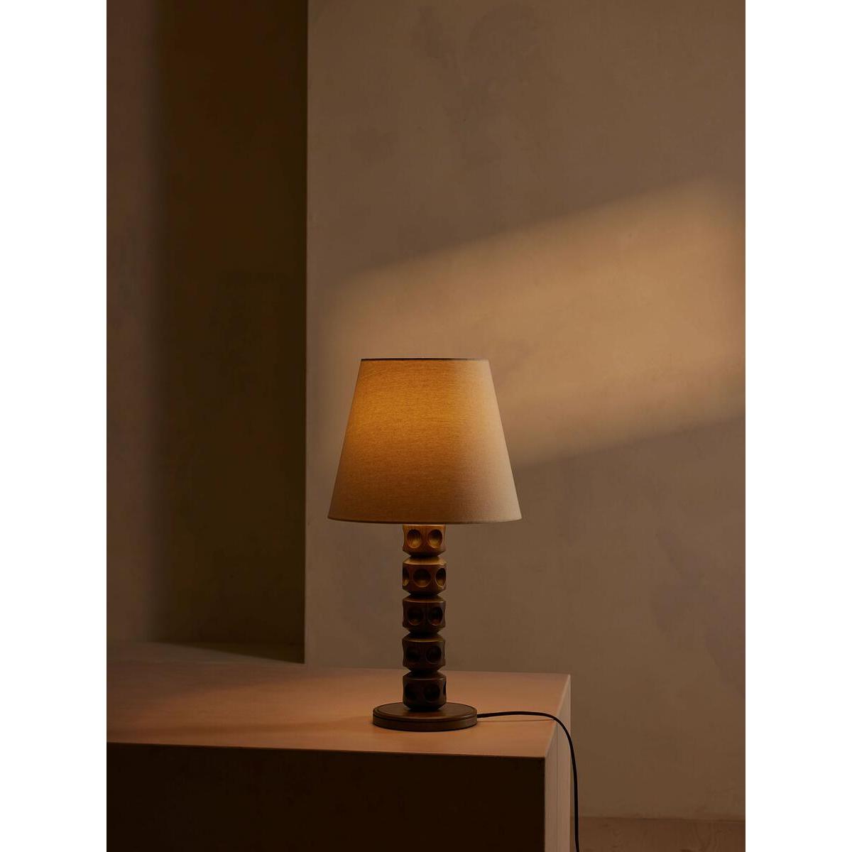 Our Francesca table lamp has a turned solid oak base with an indented dot detail, inspired by the contemporary lighting styles seen in Soho House Stockholm. Designed to work in any room, the natural linen shade allows for a warmer light and is finished with antique brass details. All of our portable lamps are fitted with dimmer switches, allowing you to tailor the light level to your mood. Turned solid oak base Natural linen tapered shade Antique brass finish Indented dot detail Recommended bulb:Tala 6W Globe LED Inspired by Soho House Stockholm