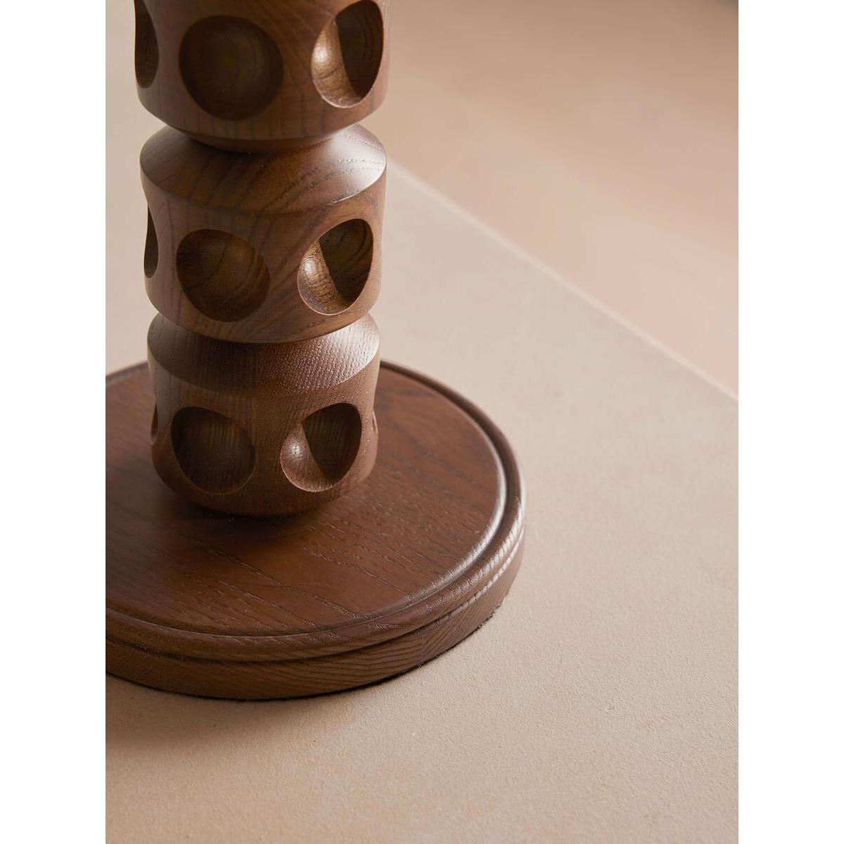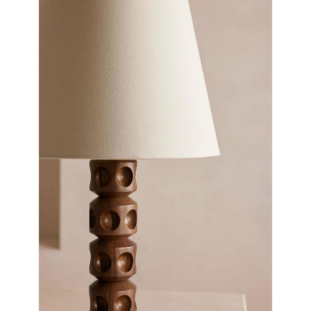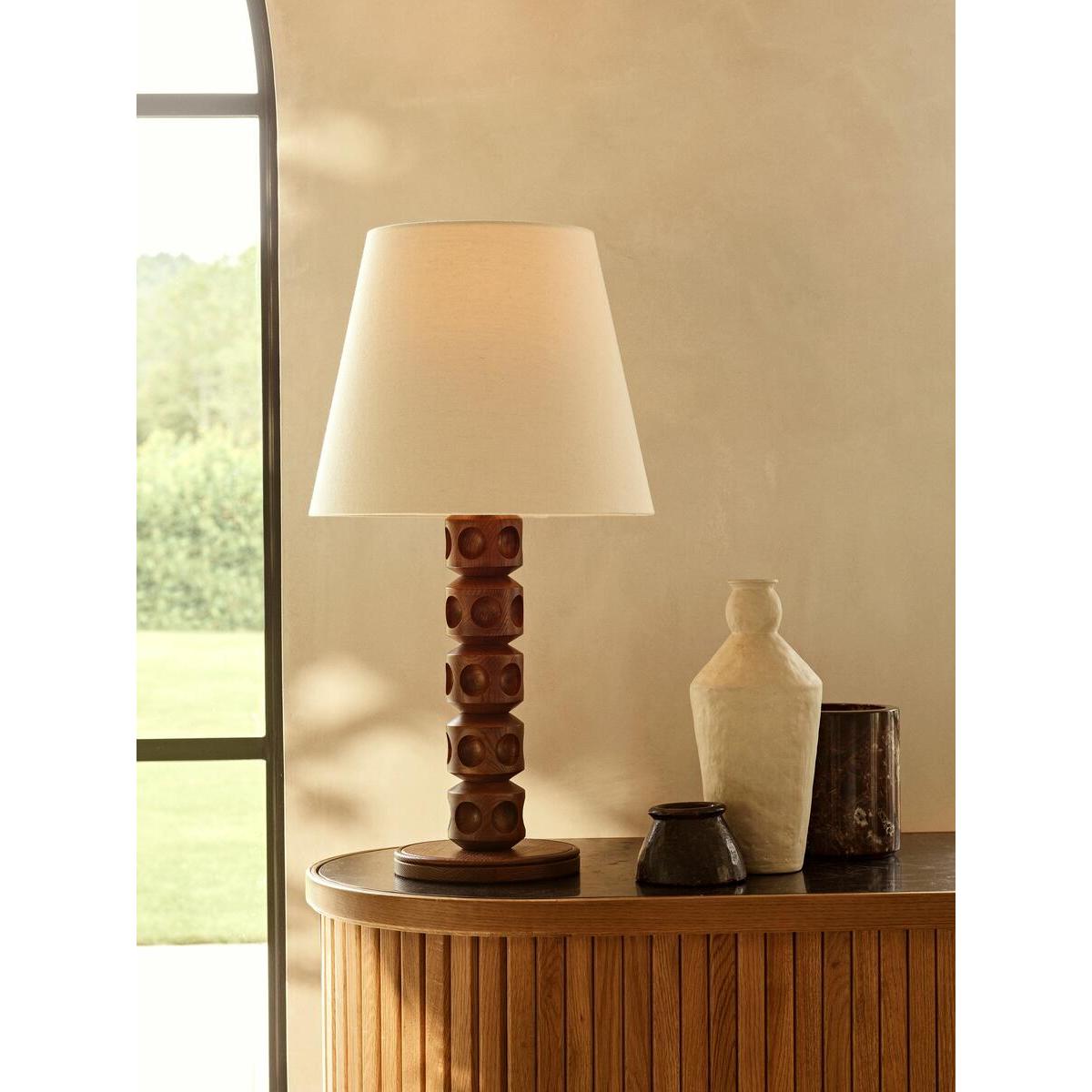 Our Francesca table lamp has a turned solid oak base with an indented dot detail, inspired by the contemporary lighting styles seen in Soho House Stockholm. Designed to work in any room, the natural linen shade allows for a warmer light and is finished with antique brass details. All of our portable lamps are fitted with dimmer switches, allowing you to tailor the light level to your mood. Turned solid oak base Natural linen tapered shade Antique brass finish Indented dot detail Recommended bulb:Tala 6W Globe LED Inspired by Soho House Stockholm