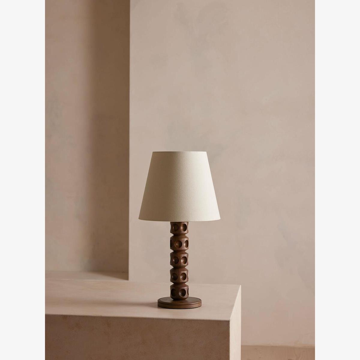 I really like this lamp for its sculptural base, which adds a tactile and slightly sculptural element to any interior. It works particularly well in eclectic or modern spaces where you want to combine function with visual interest. The neutral shade keeps it versatile, allowing it to blend seamlessly with both colour-rich and muted schemes. Practical styling tips include pairing it with minimalist side tables or placing it on a bookshelf for a cosy reading nook. It also works well in bedrooms or living rooms where a warm, inviting glow is desired without overpowering the space.