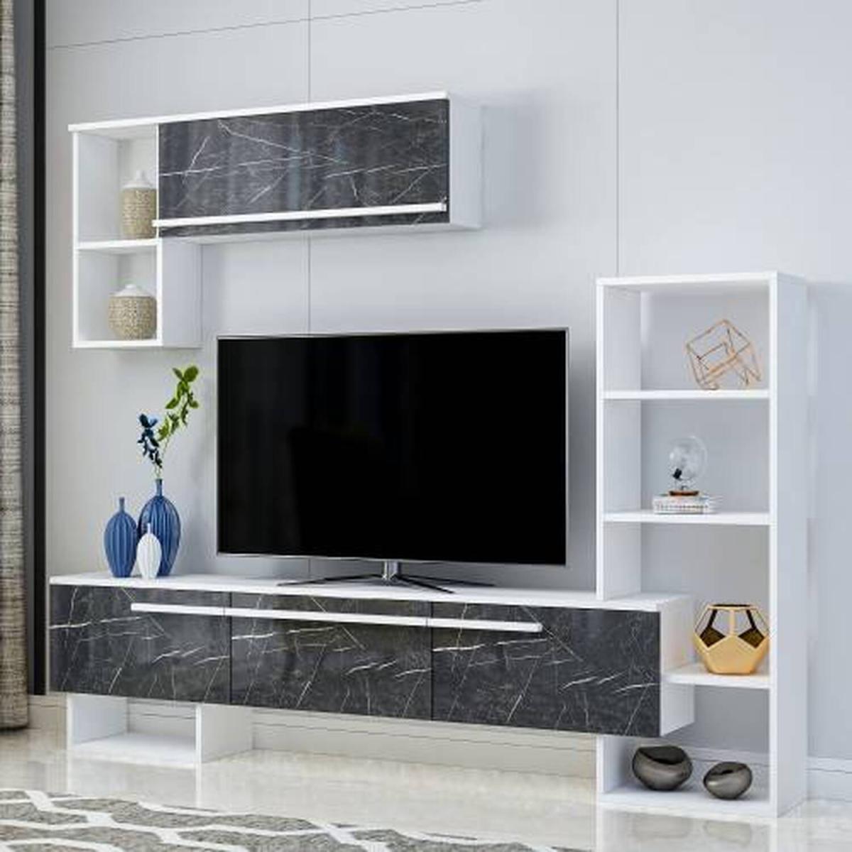 Franci TV Stand and Media Console - White & Black Marble Effect