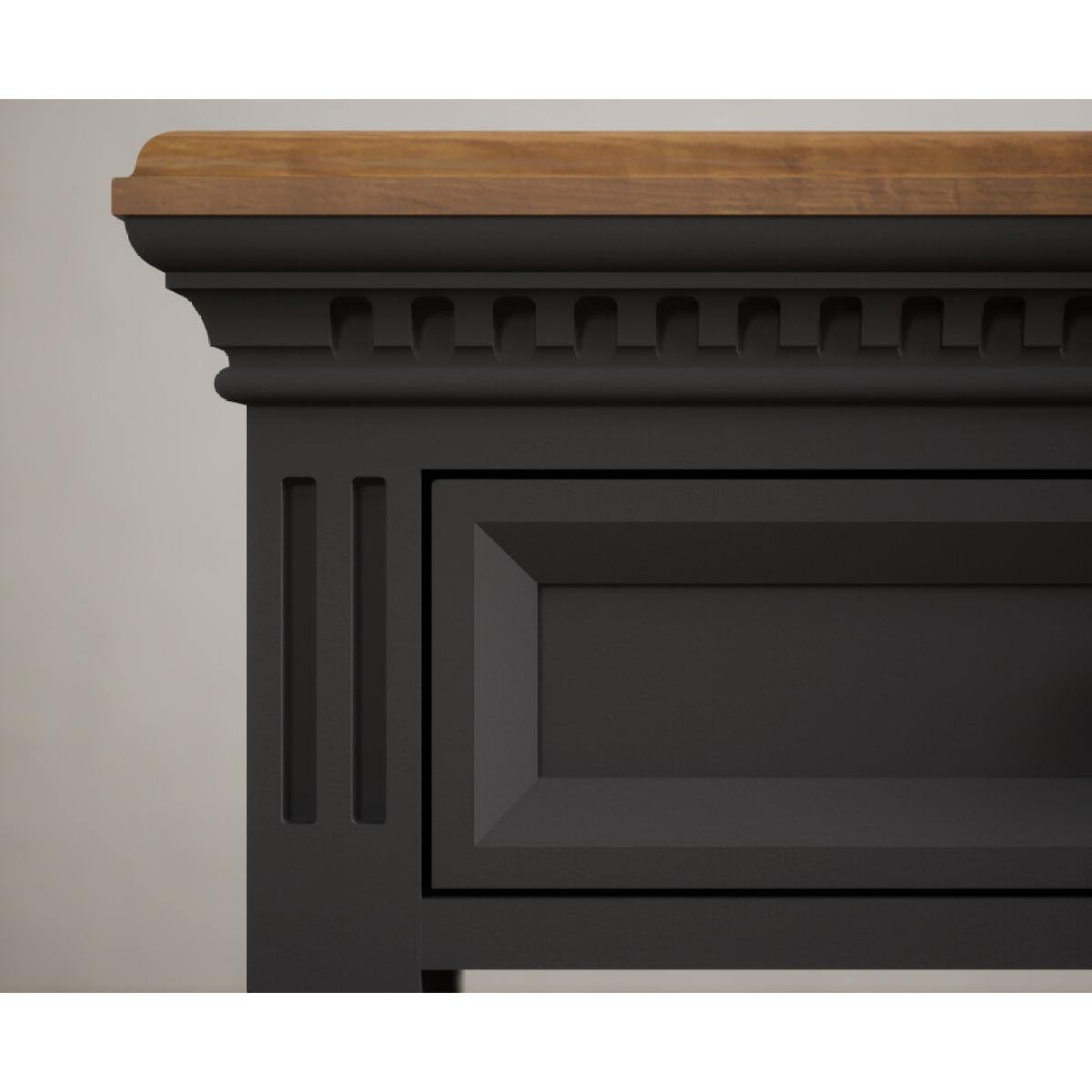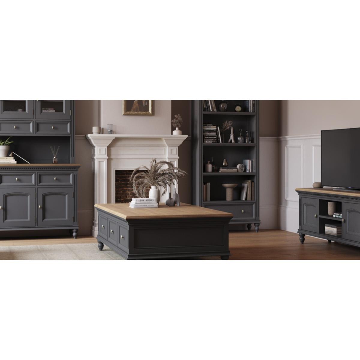 I’m a big fan of the Francis console - the warm oak top and charcoal-grey painted base give it just enough contrast to sit comfortably in both traditional and more pared-back schemes. Its slim profile makes it ideal for hallways or behind a sofa, and the turned legs add a subtle nod to classic styling without feeling fussy. For styling, I’d hang a simple round mirror or a framed print above, then balance a pair of small lamps or candleholders either side. Use the drawer fronts for stashing keys or mail, and on the lower shelf place woven baskets or a couple of low planters to keep the look tidy yet welcoming.